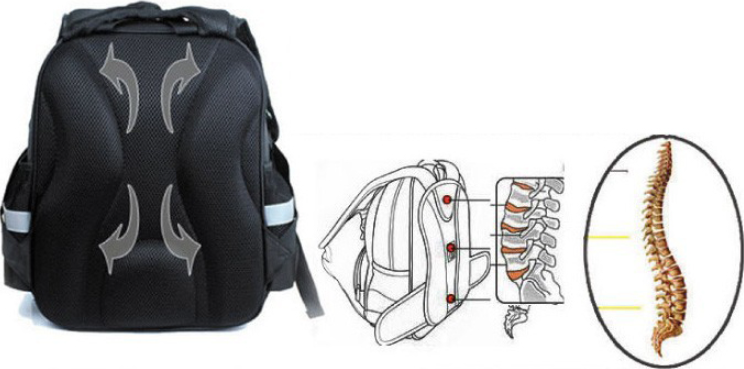 Особенно важный элемент конструкции, если вы выбираете ранец для ученика 1-3 классов. Для здоровья школьника следует выбирать ортопедическую спинку — плотную, со стабильной формой, с толстыми подушками. Она равномерно распределяет нагрузку и обеспечивает нормальное формирование осанки. Подушки выполняют две функции: обеспечивают плотное прилегание к спине ребёнка и защищают спину от углов находящихся внутри предметов.