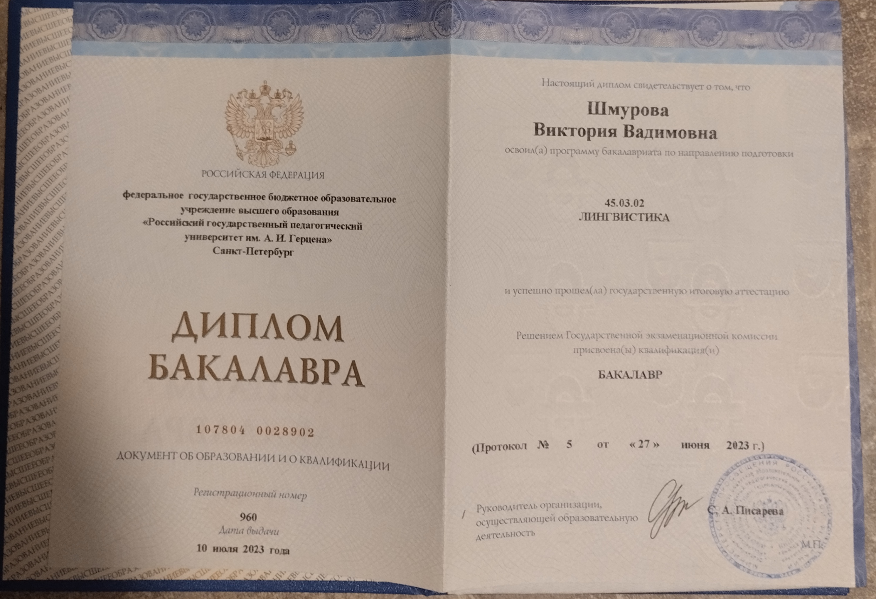 Здравствуйте! Я преподаю английский язык ученикам от 12 лет и старше без ограничения. Окончила РГПУ им. Герцена по специальности " Теория и методика преподавания иностранных языков и культур" Я могу помочь в освоении английского языка, владею самыми современными методиками преподавания. Предпочитаю работать по коммуникативной методике (по желанию клиента). Подтягиваю по школьной программе.