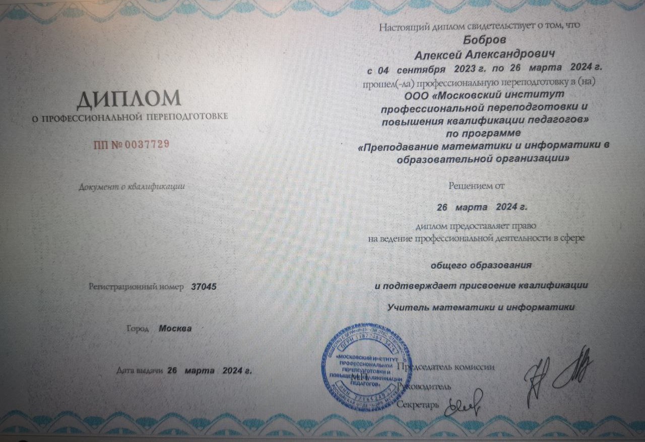 Добрый день, уважаемые ученики и родители! Приглашаю вас на свои занятия. Мой преподавательский стаж составляет 15 лет, из которых более 6 работаю в специализированном учебном центре по подготовке к ОГЭ и ЕГЭ, и в настоящее время также работаю в частной общеобразовательной школе. Преподавание - это моё призвание, которое в нашей семье передаётся из поколения в поколение. Имею 2 высших образования МГУ им. М. В. Ломоносова, а также педагогическое образование с квалификацией "Учитель математики и информатики" Занятия провожу дистанционно или индивидуально дома (в 5 минутах пешком от м. Молодёжная) Алгоритм подготовки к экзамену при работе со мной обычно выглядит так: 1. Провожу первое вводное занятие-диагностику по авторским материалам, на котором выявляю текущий уровень знаний. 2. После диагностики сообщаю родителям и ученику конкретный минимальный ГАРАНТИРОВАННЫЙ балл, который мы наберём в результате подготовки. В случае, если этот балл не будет набран, я возвращаю 100% от стоимости проведённых занятий. Но здесь важно понимать, что подготовка к экзамену - это совместный процесс работы ученика и учителя, поэтому подготовка требует качественной работы преподавателя, но и внимательности ученика и включенности в процесс обучения, а также выполнения домашних заданий на повторение и закрепление пройденного материала. В случае, если с этим возникают вопросы, оперативно сообщаю об этом 3. Мы согласовываем возможный день и время занятий, а также формат. Исходя из своего опыта, считаю оптимальными занятия продолжительностью 90 минут, так как этого времени достаточно для того, чтобы подробно разобрать материал, но при этом, как правило, ученики не успевают устать. Живу в пешей доступности от метро, поэтому ко мне удобно приезжать очно. В случае выбора дистанционного формата обучения использую современные методы обучения, такие, как виртуальные доски и интерактивные материалы. 4. Проведение самих занятий. Готовлю к заданиям любого уровня сложности, в том числе 2 части ЕГЭ. Материал на занятиях стремлюсь донести простым и понятным языком, сначала объясняю всю теорию, затем разбираю пример экзаменационного задания, и только после того, как убедился, что у ученика нет вопросов, даю решить задание самостоятельно, при необходимости корректируя и поправляя. Регулярно сообщаю родителям примерный прогресс в изученных темах и в примерный уровень прироста баллов на данный момент. За последние 3 года, в среднем мои ученики прибавили 45 баллов при индивидуальных занятиях и 33 балла при занятиях в мини-группах от стартовой отсечки до итогового балла на экзамене Подготовил двух учеников, которые сдали ЕГЭ на 100 баллов. Имею богатый опыт проверки экзаменационных работ, помогу не только с решением задач, но и с их правильным оформлением. Буду готов с радостью ответить на все дополнительные вопросы в личной беседе. До встречи на занятиях!