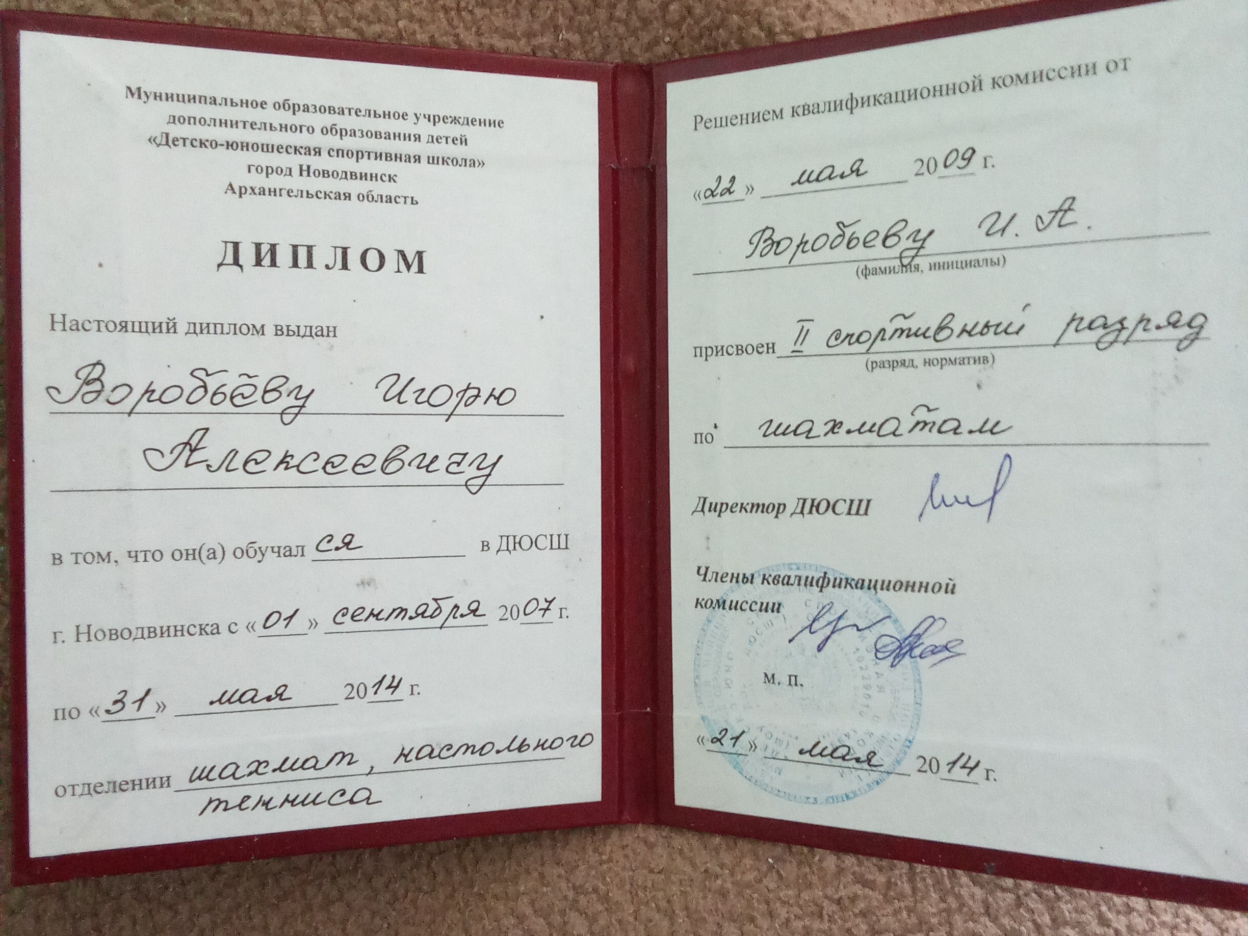 2 спортивный разряд по шахматам.