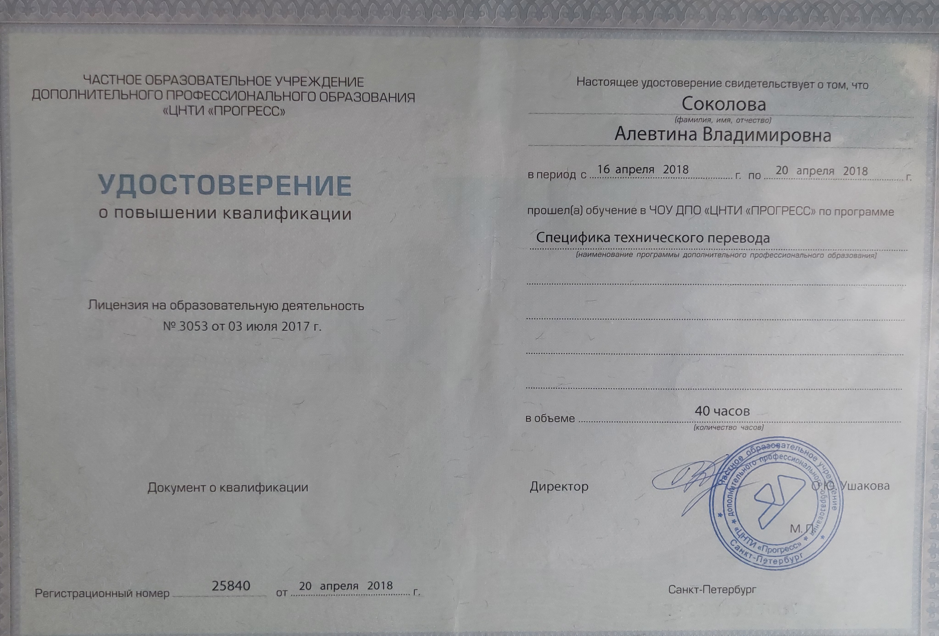 Здравствуйте! Меня зовут Алевтина Владимировна. С детства хотела говорить на каком-либо иностранном языке, и выбор пал на английский. Изучаю его с 1 класса. Увлечение переросло в профессию, которую люблю, считаю полезной и востребованной. Я — технический переводчик и преподаватель английского языка в аспирантуре. Постоянно совершенствую свои знания, что подтверждено сертификатами. Более того, я считаю, что самообразование в изучении иностранного языка играет немаловажную роль, поэтому читаю литературу по специальности как англоязычных авторов, так и отечественных. Буду рада помочь в изучении английского языка, а именно: 1. Разговорный английский 2. Общий английский 3. Помощь в освоении школьной программы 4. Английский для путешествий 5. Технический английский (IT, космическое приборостроение) 6. Академический английский. Занятия провожу в вечернее время онлайн или оффлайн.
