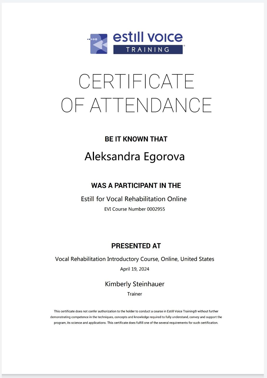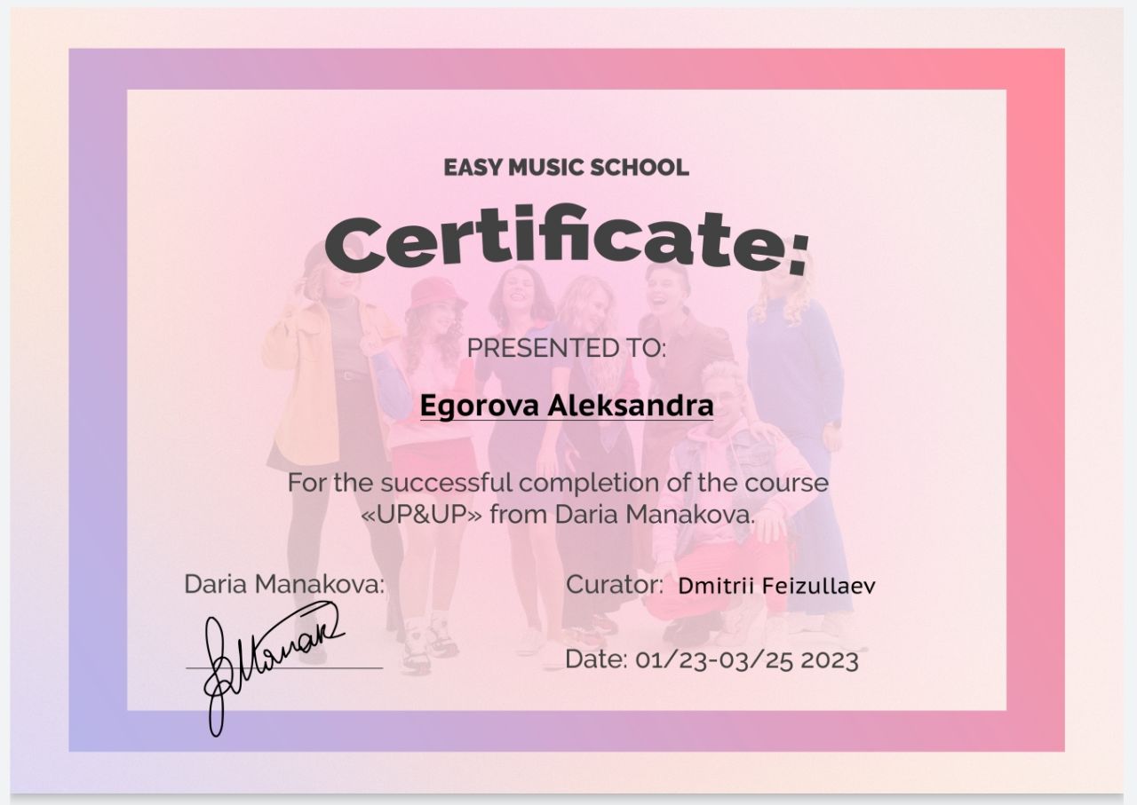 Привет! Меня зовут Александра. Я преподаю эстрадный вокал онлайн. В данный момент у меня есть несколько форматов работы: ✅Индивидуальные онлайн уроки, 60 минут (самый быстрый и эффективный способ научиться петь) ✅Групповые онлайн уроки, 90 минут (занятие в мини группе до 5 человек, первые полчаса уделяем разогреву и работе над техническими приемами, далее уделяю внимание каждому ученику по очереди, разбираем сложные места в конкретной песне) ✅Клуб – чат в телеграм, помощник в выполнении домашних заданий и клуб для общения. Занимаюсь со взрослыми любого возраста и детьми с 8 лет. В проведении онлайн занятий большое внимание уделяю качеству. У меня хороший интернет, веб камера и микрофон, вы точно будете хорошо меня видеть и слышать. Вот 5 причин, почему вам понравится у меня учиться: 🔷️1) У меня большой и разнообразный опыт преподавания музыки, более 10 лет профессионального образования, а также более 10 пройденных дополнительных курсов, среди которых международно признанные тренинги EVT и DVT, вводный курс в вокальную реабилитологию, курс Up&Up Даши Манаковой. Преподаю с 2009 года. За это время я работала в частных и государственных школах Петербурга, кроме того 2.5 года работала преподавателем музыкальных дисциплин в Китае. В данный момент работаю как частный преподаватель. 🔷️2) В построении плана обучения я опираюсь на ваши цели и предпочтения. Все мы разные. Каждый хочет получить от занятий что-то свое. Некоторые мои ученики сами не знают, почему они хотят заниматься музыкой. У них есть душевный порыв, но нет сформированной цели. Кто-то напротив уже имеет опыт в музыке и приходит ко мне с конкретной задачей. На первом занятии я определяю ваш уровень, узнаю о ваших целях и пожеланиях и дальше мы учимся исходя из этих данных. Если вы приходите с целью петь для себя, я помогу вам научиться попадать в ноты, подбирать песни, подходящие по тональности и при этом не буду грузить домашними заданиями. В случае, если вы хотите развиваться в вокале серьезно, мы будем подробно изучать музыкальную теорию, основы и нюансы вокального искуства, правильную работу с микрофоном, артикуляцию, передачу эмоций через пение, и другие аспекты, которые необходимы, если вы хотите звучать как профессионал. При этом от вас потребуется большая отдача. Нужно будет много заниматься самостоятельно и выполнять ДЗ. То, как мы будем учиться, зависит от того, к какому результату вы хотите прийти. 🔷️3) Мой подход к обучению основан на современных научных методиках и техниках. Ваш голос - это сложный музыкальный инструмент. У гитары есть дека, струны и гриф, а у вашего голосового аппарата есть гортань, ложные и истинные связки, резонаторы и другие структуры. Чтобы красиво петь – вы должны уметь чувствовать и контролировать эти структуры. На моих занятиях мы будем учиться это делать, с помощью специальных упражнений и современных вокальных техник. 🔷️4) Любовь к музыке и любовь к людям позволяют мне создавать на уроках комфортную, безопасную, поддерживающую атмосферу. Для меня одна из важнейших вещей в преподавании – дать ученикам возможность самовыражаться, не бояться осуждения, получать поддержку. 🔷️5) Для своих учеников я регулярно организую отчетные концерты. Это по-настоящему любимое и ожидаемое событие. Мы собираемся вместе, ученики приглашают друзей и родных, мы поем пе