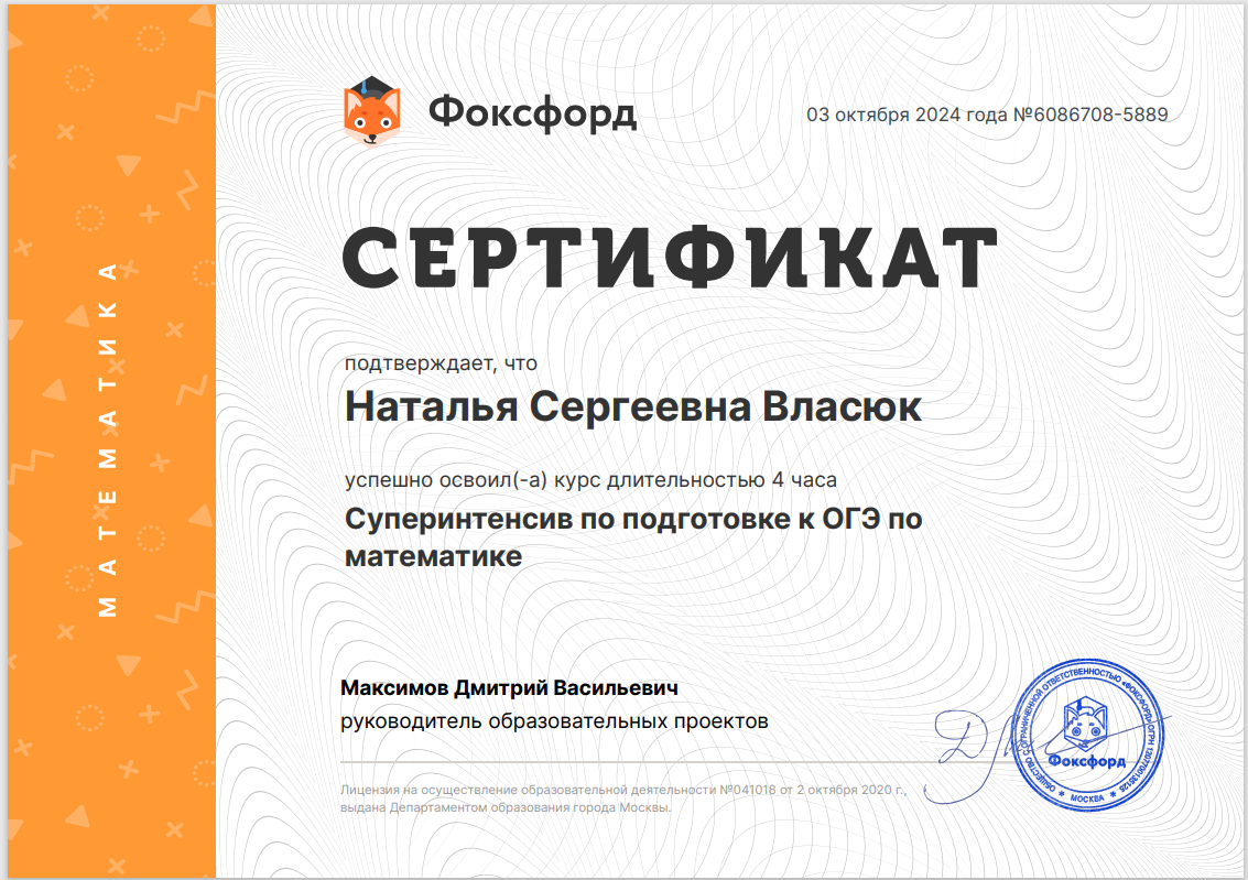 С 2012 года помогаю ученикам всех возрастов повышать уровень знаний в математике. Подготавливаю: - к решению самостоятельных и контрольных работ на высокие отметки; - к успешной сдаче ОГЭ и ЕГЭ; - к поступлению в лицеи, математические классы, колледжи и ВУЗы. Помогаю: - выявить пробелы в уже пройденном материале - восполнить пропущенные знания; - разобрать непонятные темы, домашние задания. Моя основная задача не просто "натаскать" и заставить "зазубрить" формулы и решение задач, а объяснить, почему и как решается конкретная задача или пример. Поэтапно показываю методы и способы решения задач. Умею объяснять сложное простым и доступным для детей языком. Буду рада помочь в освоении такого многогранного предмета как математика. Её может понять каждый. Мой многолетний опыт и положительные отзывы на разных площадках это подтверждают. Провожу набор на 2025-26 учебный год как на индивидуальные занятия, так и в пары и мини группы.