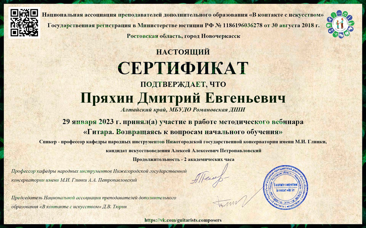 Приветствую!Меня зовут Дмитрий,я профессиональный гитарист с музыкальным и педагогическим образованием. Обучаю пению и игре на гитаре (детей и взрослых). Ноты по желанию. Занятия проводятся дистанционно в удобное для вас время. Пробное занятие бесплатно. Онлайн поддержка круглосуточно. Звоните сейчас, обсудим детали.