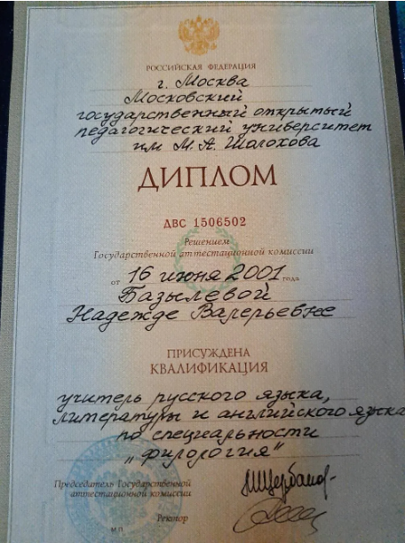 Преподаватель английского языка, русского языка и литературы (с углубленным изучением иностранного языка)