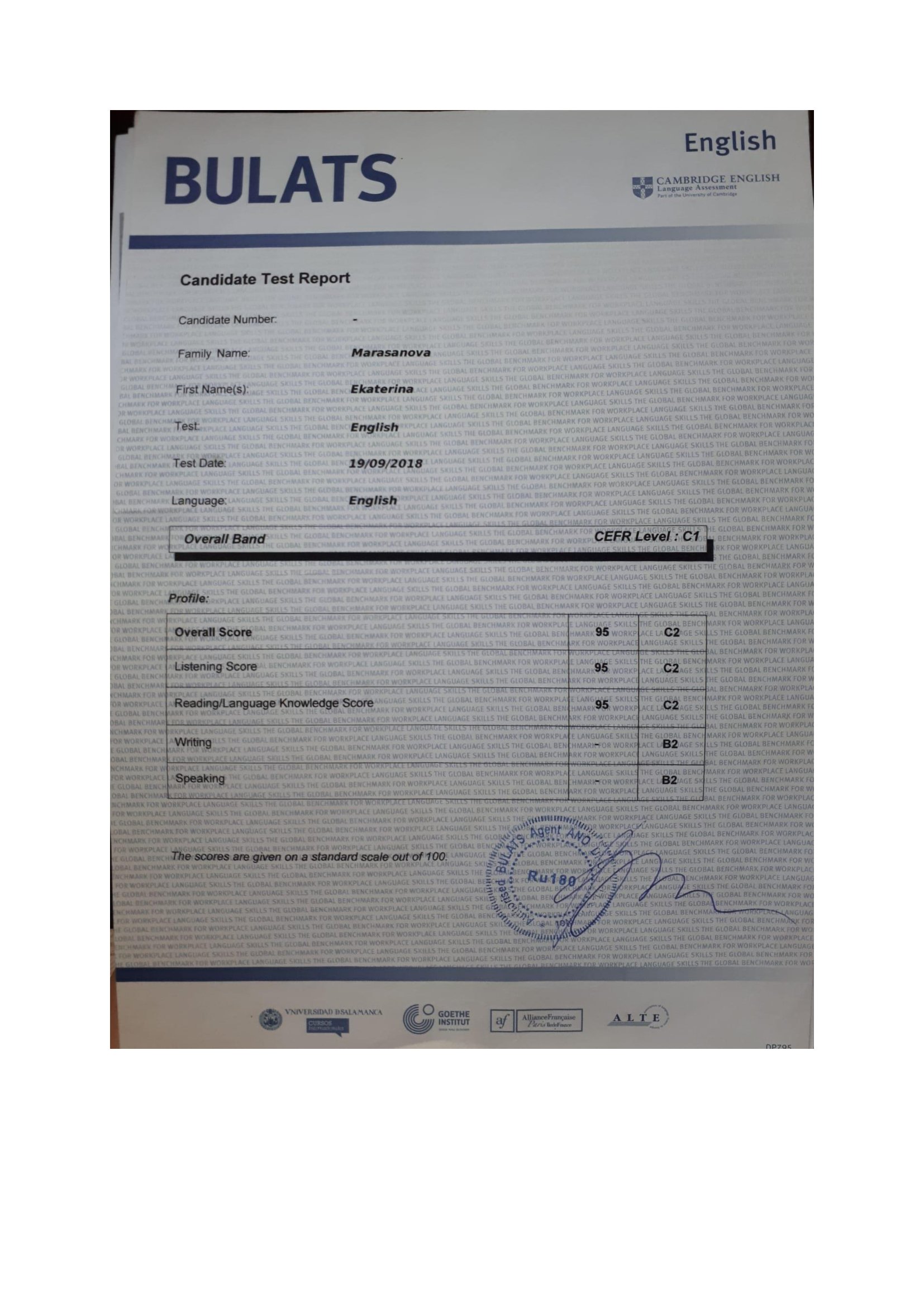 Сертификаты: ЭКСПЕРТ. Бизнес-английский BULATS- C1, 2018 год. Academic IELTS- 7.0 (C1), 2019 год. Сторонник индивидуального подхода, готовлю интерактивные материалы. Использую коммуникативный подход и кейс-технологии. С 2018 года веду репетиторскую деятельность, работаю преподавателем в онлайн-школе и частные занятия. 3 года работала преподаватем на платформе подготовки студентов на академический IELTS. Я проходила стажировку за рубежом, имею опыт жизни за границей в Америке, штат Maryland. Опыт подготовки к международным экзаменам (Academic, General IELTS, SAT, CPE, PTE), повышение уровня знания ,подготовка школьников к ОГЭ, EГЭ, Кембриджским экзаменам. Некоторые мои студенты сейчас живут и работают в международных компаниях Канады, учатся в мед.университетах на английском языке и на дизайнеров. Все они сдали IELTS на 5,5-6,5 (B1-B2).