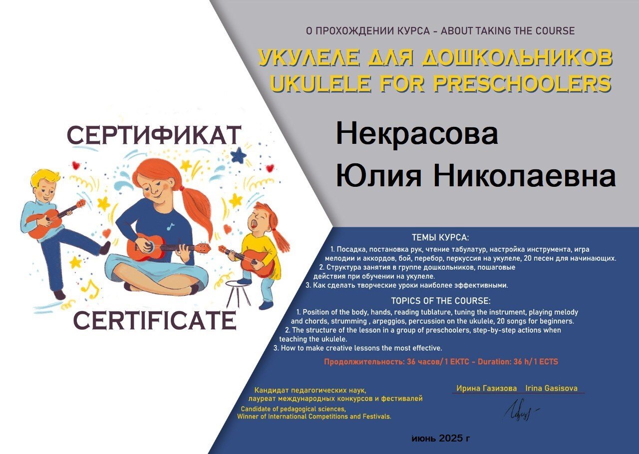 Преподаватель гитары, укулеле и сольфеджио для детей и взрослых с 5 лет. Высшее образование (КГУКИ факультет консерватория)