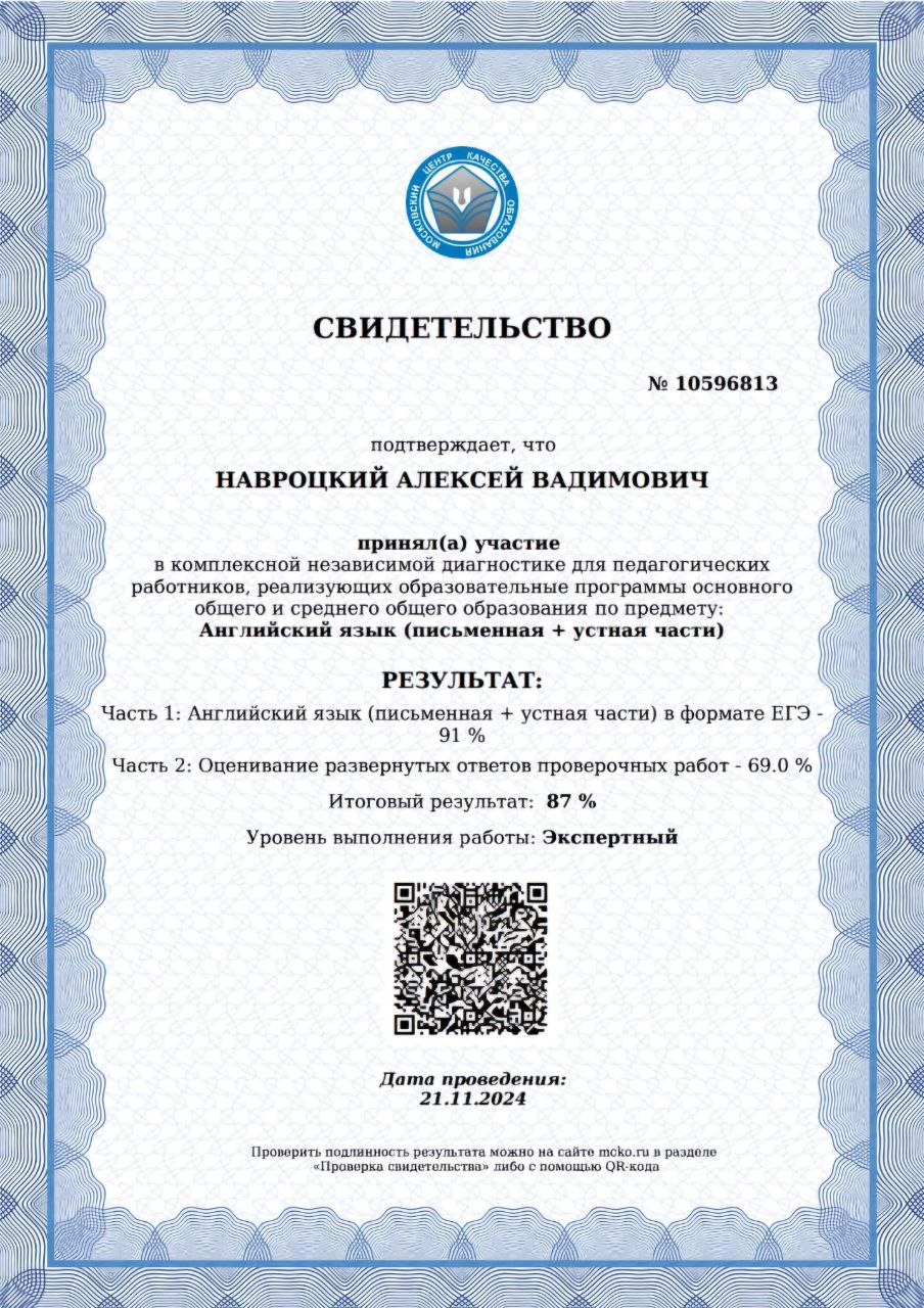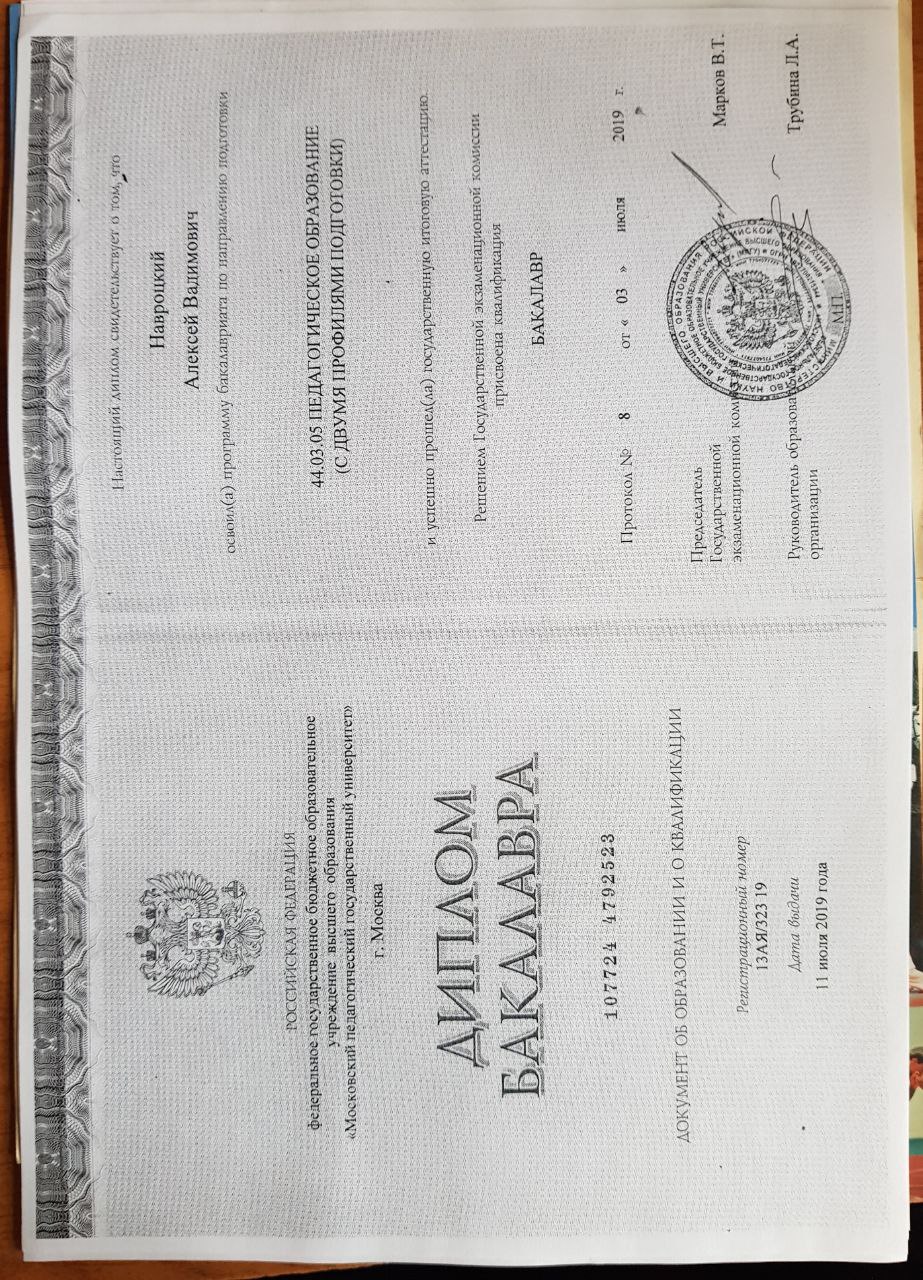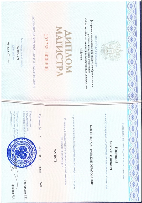 Окончил бакалавриат МПГУ в 2019 (Ин.яз, педагогическое образование с двумя профилями подготовки — английский/немецкий), магистратуру в 2021. С 2022 года обучаюсь в аспирантуре. Стажировки в США (2012 год на 21 день, 2014 на 21 день; 2018 на 3 месяца) Опыт работы в языковом центре 3 года (групповые занятия с младшими школьниками, дошкольниками, подготовка к ГИА). Работаю в московской школе с 2020 года. Музыкальное образование. Музыка для меня — хобби и дополнительный заработок. Увлекаюсь фитнесом.