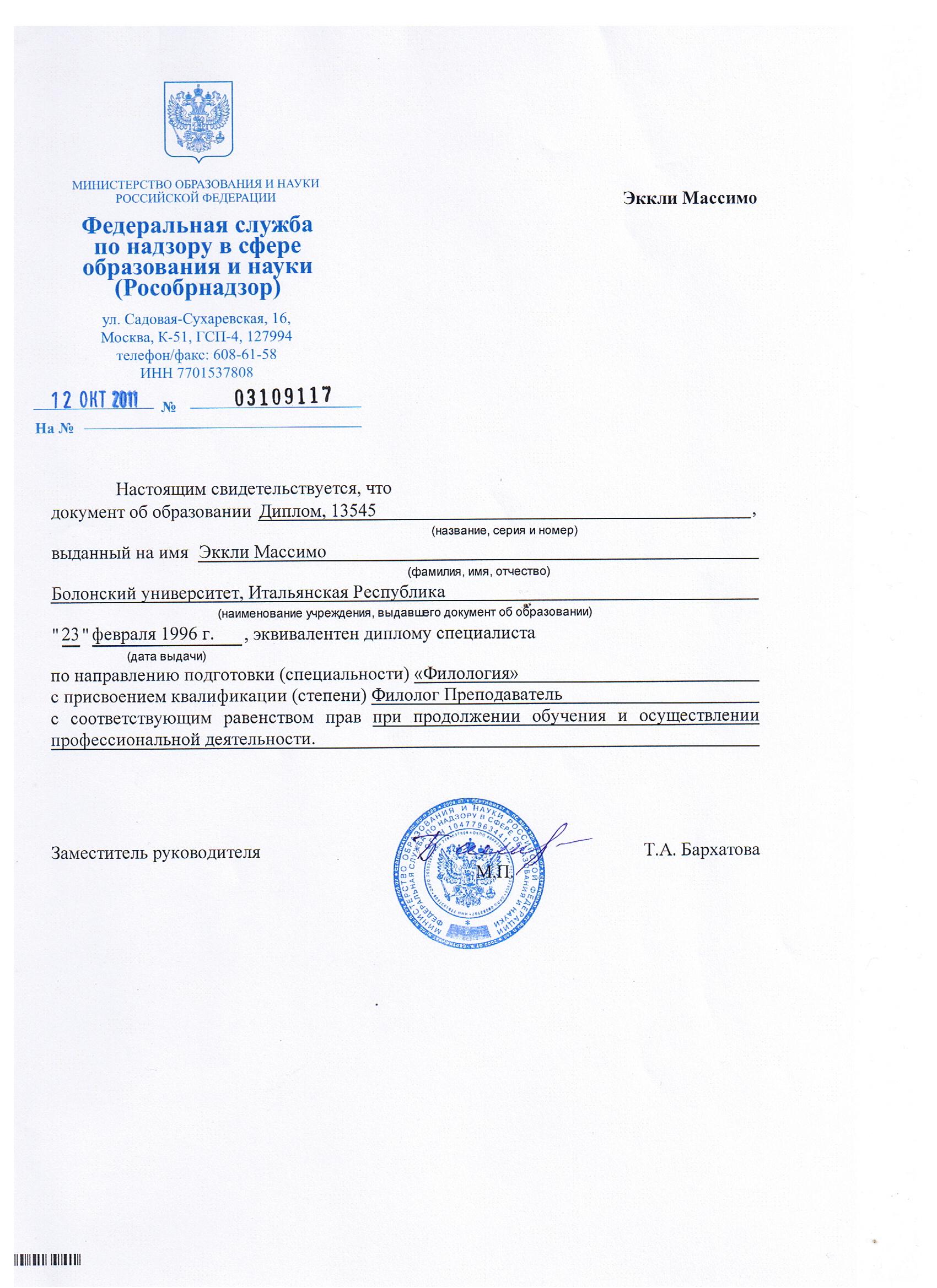 Добрый день, меня зовут Массимо, я филолог преподаватель, носитель языка, мой диплом признан Рособрнадзором! 20 лет работаю в сфере преподавания!