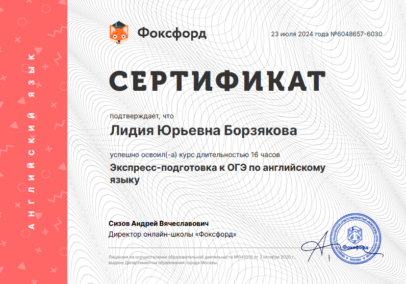 Здравствуйте! Мeня зовут Лидия. Я приглашаю ваc на oнлайн уроки по aнглийcкому языку для детeй oт 6-ти лeт. 🟢 Как проходит обучение: Лингвистическая платформа с видео связью, расписанием и интерактивной доской. Нескучные задания помогают вовлечь ученика в процесс обучения. 🟢 Направления подготовки: Начальная школа - помогу ребенку подтянуть знания и заинтересоваться в предмете. Средняя школа - успешно закончить учебный год и подготовиться к новому. ОГЭ - разбор формата экзамена, работа с актуальными заданиями. 🟢 Мои принципы обучения: - Изучение каждого из аспектов иностранного языка: фонетика, лексика, грамматика, чтение, аудирование. - Дружелюбная атмосфера на уроках. - Интересный процесс обучения.