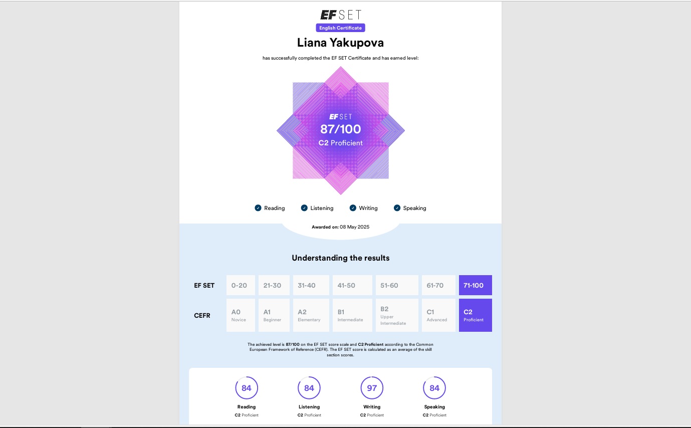 Моя цель — показать, что английский может быть живым, логичным и увлекательным! 🎯 Я помогу вам или вашему ребенку не просто «выучить предмет», а начать уверенно говорить, понимать и получать высокие баллы на экзаменах. ✅ Ключевые преимущества: • 🏆 Более 10 лет преподавания — знаю все подводные камни школьной программы и экзаменов. • 📊 Результат, а не обещания: средний балл моих учеников на ЕГЭ — 82+, 95% сдают на 75+. • 🧩 Индивидуальный подход к каждому: программа строится под ваши цели (школа, ЕГЭ, работа, путешествия). • 💻 Современный формат: онлайн-уроки с интерактивной доской или очные встречи в уютной атмосфере. • 🧠 Авторские материалы + актуальный контент: фильмы, подкасты, игры — учимся на том, что интересно вам. 📈 Что вы получите: • Для школьников: повышение успеваемости, ликвидация пробелов, подготовка к ОГЭ/ЕГЭ без стресса. • Для взрослых: разговорный курс, деловой английский, подготовка к собеседованиям. • Для всех: устойчивые навыки, а не краткосрочную память. 🎯 Моя специализация: • Подготовка к ЕГЭ/ОГЭ (разбор всех заданий, критериев, стресс-менеджмент). • Английский для школьников (1-11 класс, помощь с домашними заданиями, проектами). • Общий и разговорный английский для взрослых.
