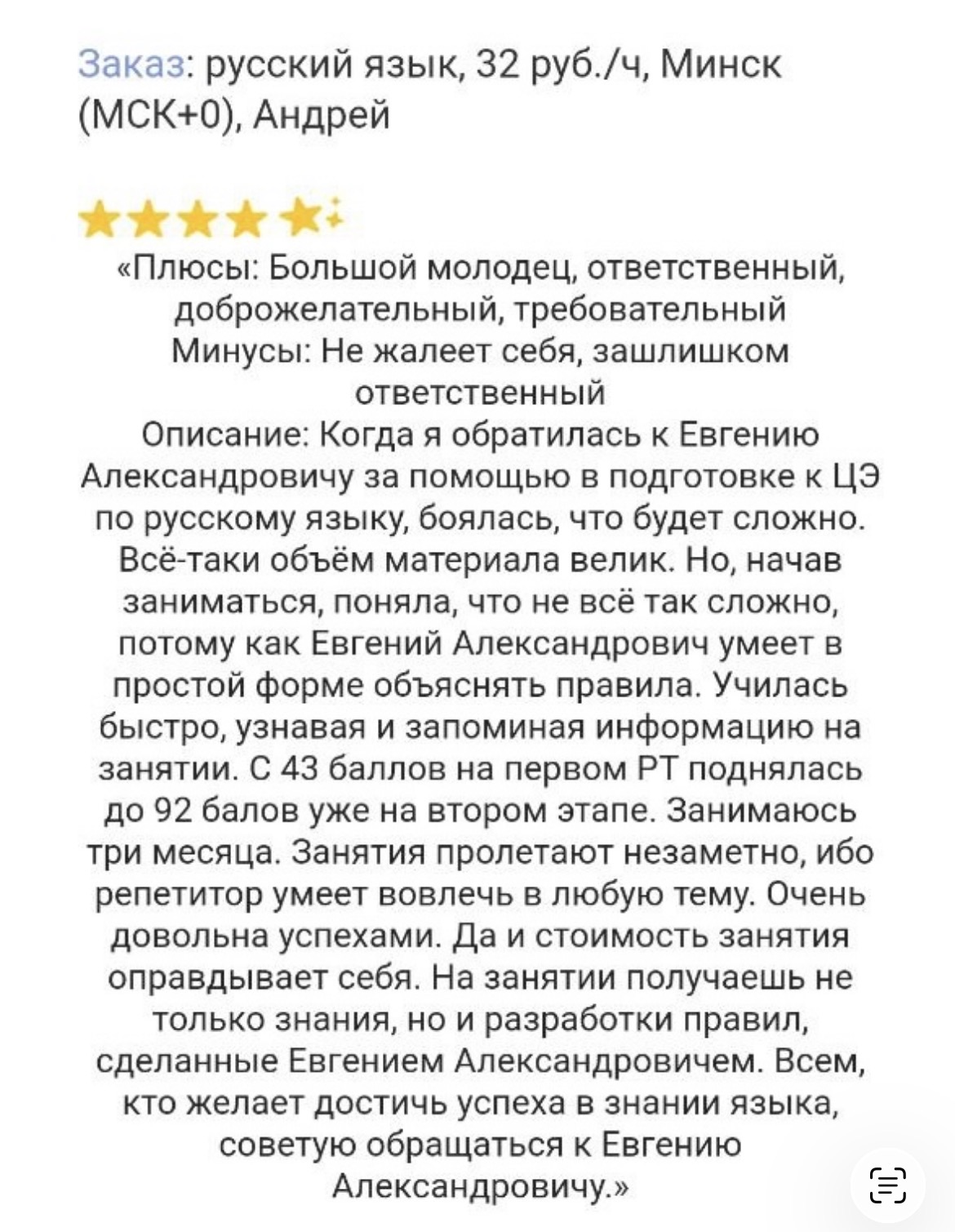 Профессиональный репетитор по белорусскому и русскому языкам. Помогаю учащимся подготовиться к экзаменам за 9 класс и ЦЭ за 11 класс. Для удобного понимания и освоения материала разработал опорные меткие конспекты (делюсь ими с учениками). Работаю исключительно на результат и достижение цели, поставленной ребенком в год поступления. Набирают ребята по итогу работы от 87 до 100 баллов (есть фото сертификатов) и поступают в лучшие ВУЗы страны. Осуществляю помощь и ребятам 5-8, 10 классов. Способствую ликвидации пробелов по школьной программе, консультирую в написании сочинений, орфографии, пунктуации. Помогаю онлайн и офлайн. Работаю индивидуально, в парах, мини-группах. Личный сайт: https://sazanovich.by/