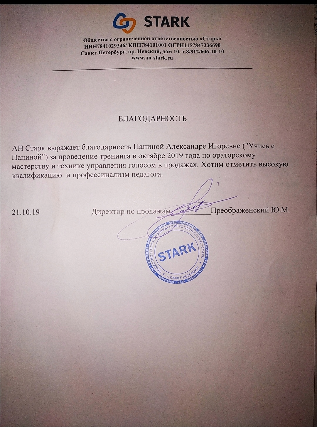 Со слов клиента: "Замечательный преподаватель. Я в восторге. Занятие прошло успешно. Цель была достигнута".