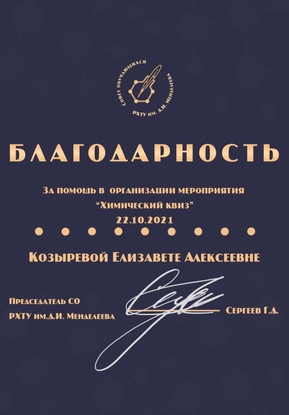 Со мной ученик будет: • познавать прекрасный и загадочный мир химии • узнавать много интересного, чему не научат в школе • улучшать успеваемость и больше никогда не пользоваться ГДЗ при изучении химии • проверять и превосходить себя О себе: Ответственная студентка ведущего российского химико-технологического университета им. Д. И. Менделеева. Имею высокий рейтинг обучения 86,83/100. Активно занимаюсь общественной деятельностью и организовываю крупные мероприятия в университете. Зкаончила лицей с химико-биологическим профилем с золотой медалью. Так же закончила Авторскую Химическую Школу.