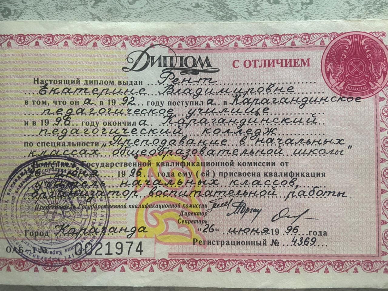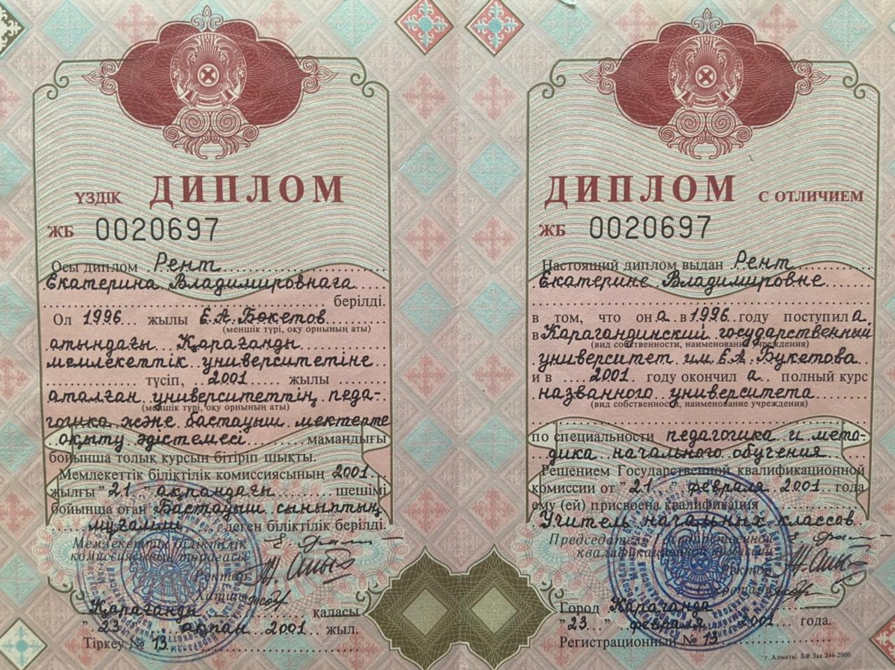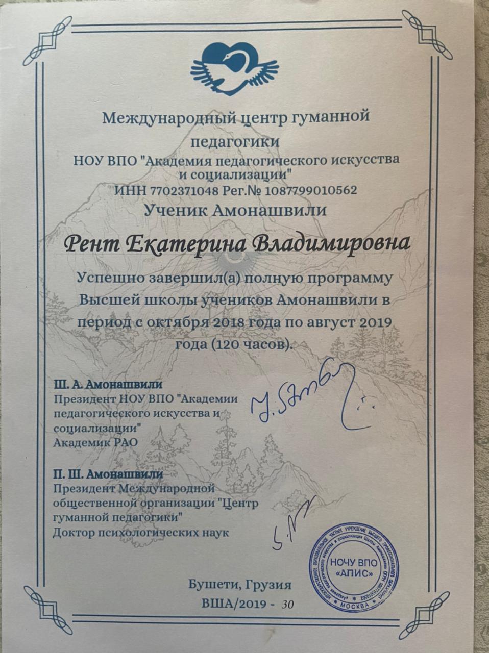 Учитель начальных классов. Работала и в частной школе и в гимназии. Учитель гуманной педагогики.