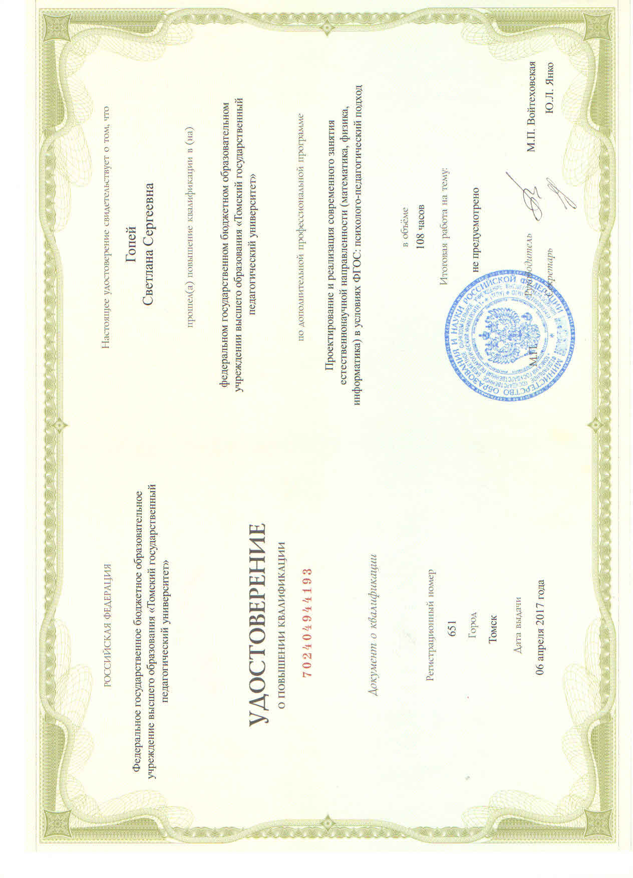 Проектирование и реализация современного занятия естественнонаучной направленности