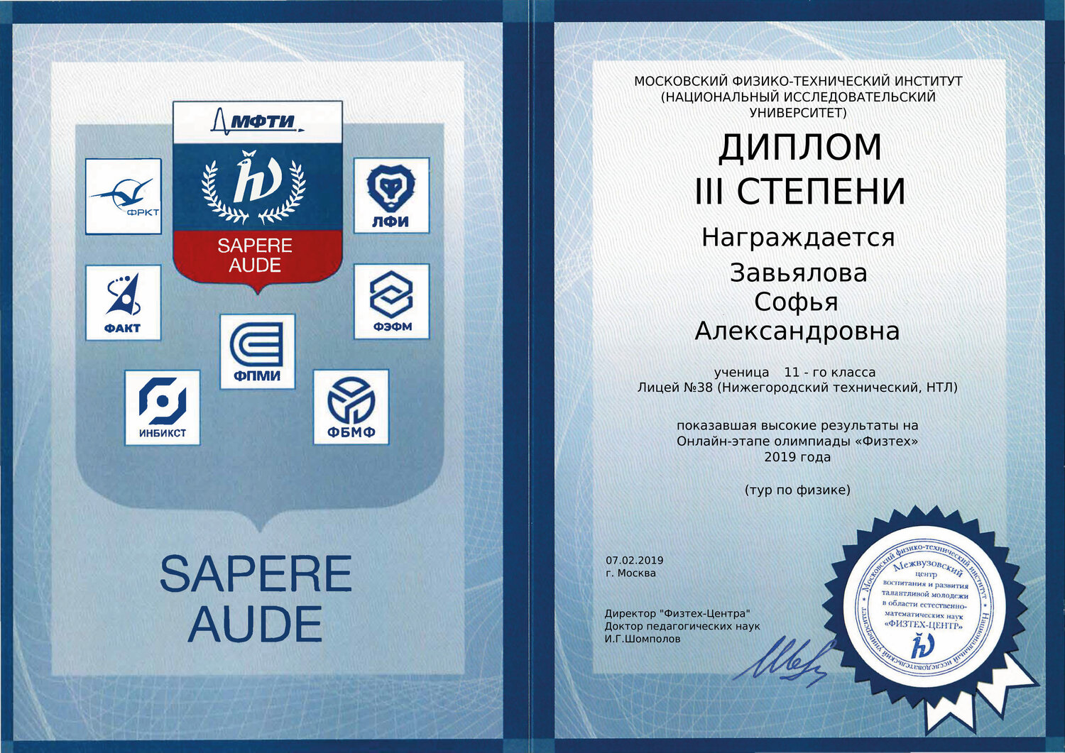 Софья Александровна занимается с моей дочерью (8 класс) физикой и готовит его к олимпиадам. Очень грамотный и увлечённый педагог, умеет заинтересовать и доступно объяснить сложные вещи. Ребёнок с удовольствием занимается и уже есть первые успехи. Спасибо большое!