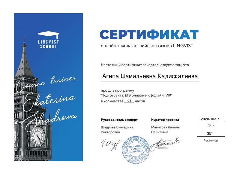 Репетитор Агипа Шамильевна