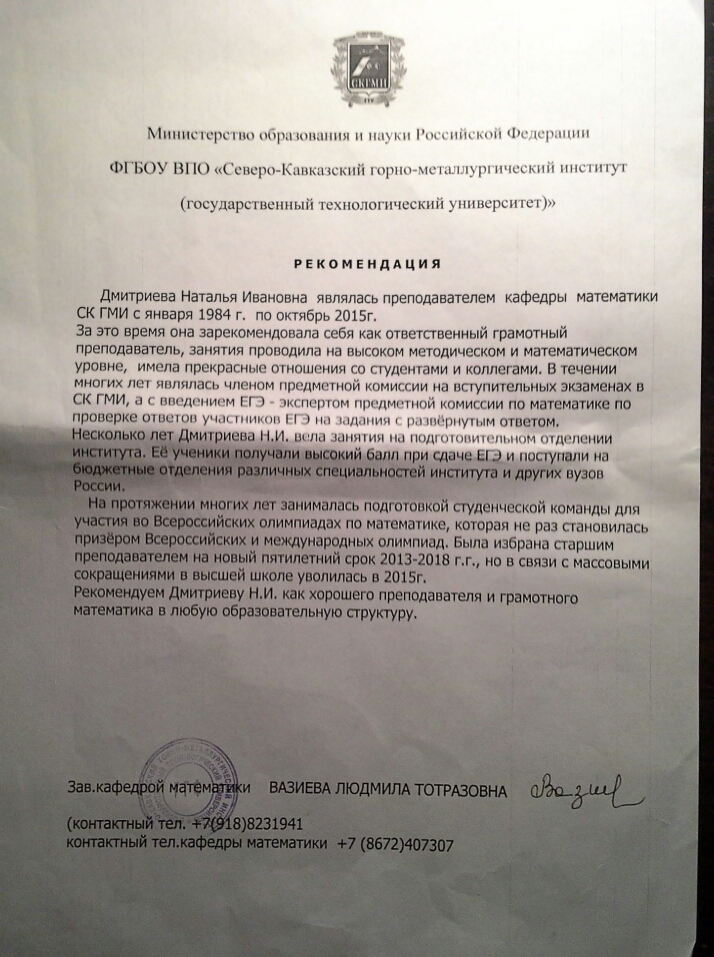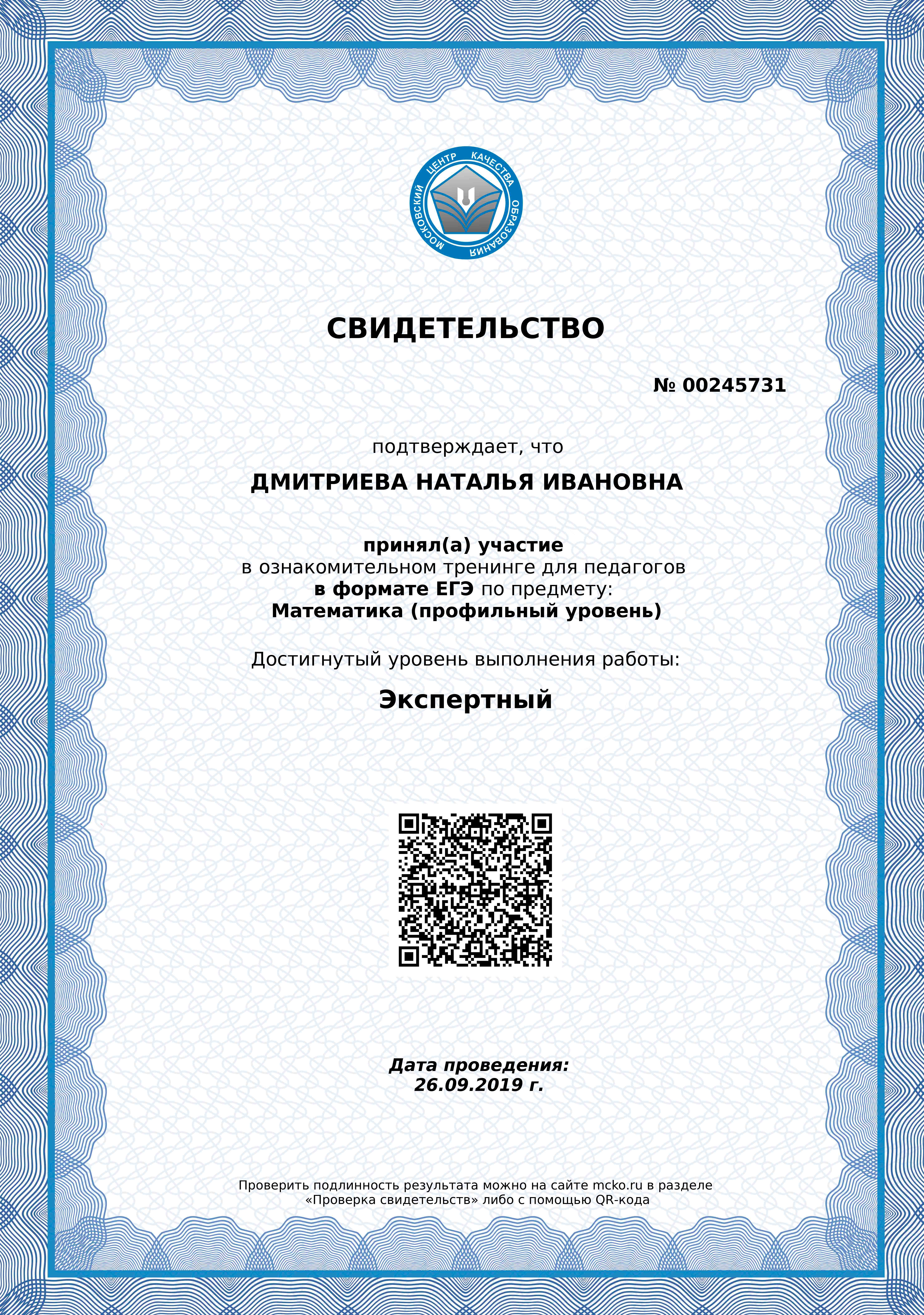 готовиться к сдаче ЕГЭ мы решили заранее, учитывая, что уровень знаний у ребенка достаточно слабый по предмету, чтобы успеть закрыть пробелы и качественно подготовиться. Занятия с Натальей Ивановной проходят хорошо, начало положено. Будем продолжать заниматься, в том числе и в летний период.