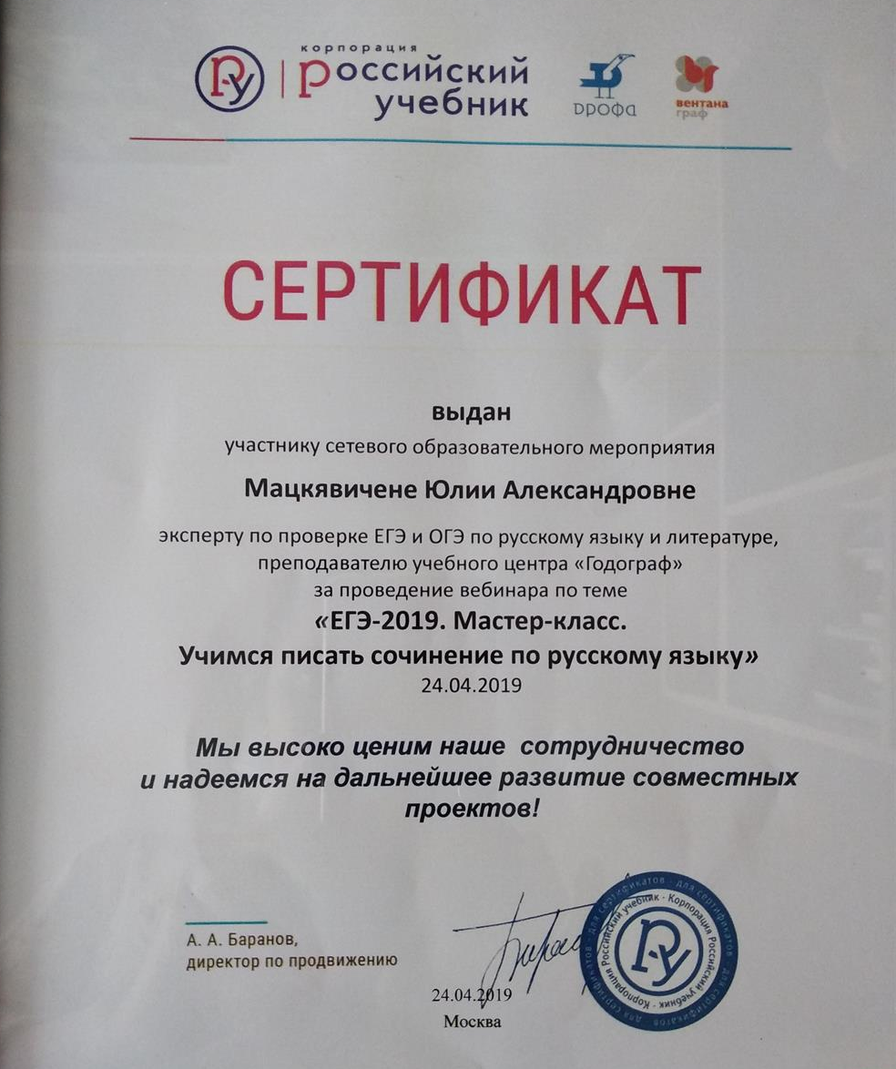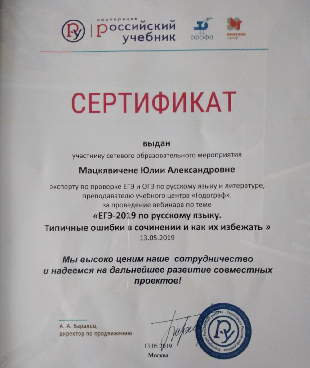 Опыт работы в школе - 14 лет. Опыт работы экспертом в предметной комиссии ЕГЭ по русскому языку и литературе с 2011 года, опыт работы заместителем и председателем региональной предметной комиссии по проверке ГИА по русскому языку и литературе, опыт работы краевым методистом по русскому языку и литературе, региональным координатором всероссийских конкурсов по русскому языку и литературе. Член Гильдии словесников. Преподаю русский язык и литературу в московском учебном центре подготовки к ЕГЭ и ОГЭ. Сотрудничаю с онлайн-школой "Фоксфорд. Нетология групп" (г. Москва), корпорацией "Российский учебник" (г. Москва).Автор курсов повышения квалификации для преподавателей русского языка и литературы, автор и ведущая вебинаров, мастер-классов, ознакомительных занятий: "Подготовка учащихся к ЕГЭ по русскому языку в рамках реализации ФГОС". "Подготовка учащихся к ЕГЭ по литературе". "Открытое занятие по литературе: Современные подходы к обучению. Подготовка учащихся к ЕГЭ по литературе". "Подготовка учащихся к ЕГЭ-2019 по русскому языку. Написание сочинения"."ЕГЭ-2019. Мастер-класс. Учимся писать сочинение по русскому языку". "Как написать сочинение ЕГЭ по русскому языку на 25 баллов в 2021 году". Регулярное повышение квалификации. Работа в московских центрах подготовки к ЕГЭ в качестве преподавателя. Готовлю к олимпиадам по литературе, к ЕГЭ и ОГЭ по литературе на высокие баллы. В работе использую свои приемы подачи материала, благодаря которым появляется интерес к изучению предмета и дети начинают самостоятельно анализировать произведения разных жанров не только русской, но и зарубежной литературы. Разбираем основы литературного редактирования текстов, что в дальнейшем способствует освоению копирайтинга (для тех, кто начинает писать статьи и зарабатывать на них в интернете). Обучение проходит индивидуально и в группах до 5 человек. Каждый год я обновляю свою анкету, веду статистику результатов ЕГЭ. В 2021 году мои ученики порадовали своими успехами. По русскому языку 12 высокобалльников (от 90 до 100). Самый высокий результат - 100 баллов (2 ученика), самый низкий - 70 баллов. От 80 до 88 баллов - 10 человек, от 70 до 78 - 4 человека. Средний балл - 85.По литературе 2 высокобалльника (90 и 100 баллов). Самый низкий результат - 73 балла. Средний балл - 87. Многие родители и ребята боятся занятий в группе. Хочу успокоить: все, кто получил от 90 до 100 баллов, занимались именно в группах, потому что были более мотивированны, чем остальные. Глядя на ребят, делающих успехи и умеющих полностью и качественно выполнять домашние задания, другие подтягивались и в результате даже обгоняли. Это вдвойне приятно. Во многом успех детей зависит и от методов работы преподавателя: если он умеет работать с группой, то, конечно, без внимания не останется ни один ученик. Индивидуальные занятия хороши по-своему, но тогда репетитор подстраивается под ребенка, а не наоборот. В таком случае обязательно вести отдельное планирование, по которому родители будут видеть, как движется работа и в какие сроки репетитор предполагает привести своего ученика к определенным результатам. Родителям я отправляю после диагностики (пробного урока) такое планирование, и они уже сами решают, что им нужно (какое количество занятий в неделю, какой результат на ЕГЭ). Если ученик самоорганизованный, то учитель с легкостью привед