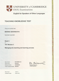 Сертифицированный преподаватель ( МГЛУ им М. Тореза, сертификаты Cambridge TKT Modules 1-2-3 с отличием). Стаж преподавательской деятельности – 15 лет. Опыт работы переводчиком с носителями языка - 15 лет и опыт работы в европейских странах. Веду частную преподавательскую практику " Частные уроки английского в Лефортово и дистанционно" ( ИП Сборская М.А.) с 2010 г. Среди моих клиентов - отдельные сотрудники и группы компаний КРОК, Actis Wunderman, Pepsico, ГК Ланит, COAlCO, Sanofi Aventis, Aegis и. т. д. Сотрудник корпоративных отделов трех ведущих московских языковых школ. Современный эклектичный подход с упором на грамматику без ущерба коммуникативным навыкам. Общий курс с любого уровня. Business English, подготовка к интервью и работе в международной компании. Подготовка к кембриджским экзаменам KET, PET, FCE - лучший результат 175 баллов (B2) c нуля за 10 месяцев. Специализированные курсы – English for Marketing, Legal English, English for Banking and Finance. Помощь студентам по программе и в подготовке к экзаменам ( опыт работы с учащимися МГУ, РГГУ, СПбГУ, ВШЭ, МЮА ). Английский для путешественников.