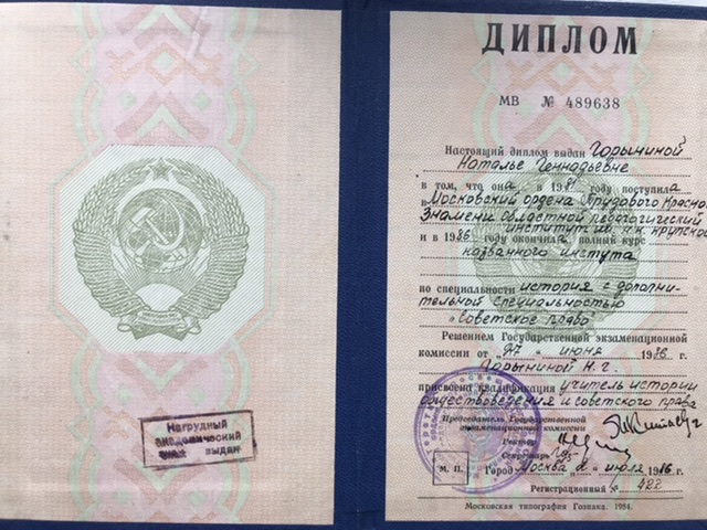Специальность: история с дополнительной специальностью « Советское право». Квалификация: учитель истории, обществоведения и права