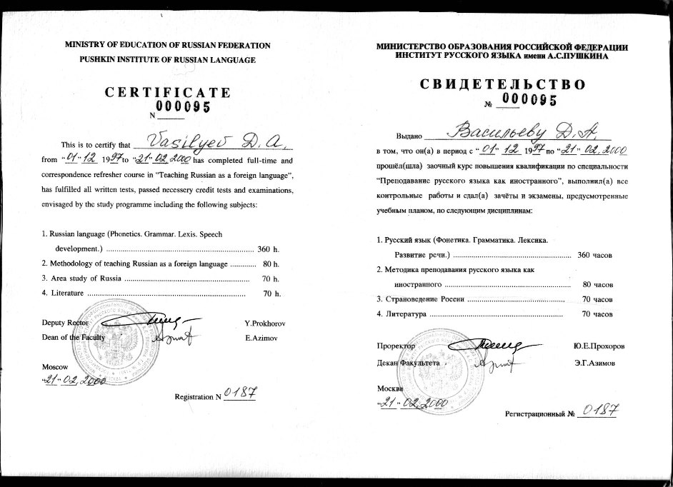 Здравствуйте. Всю свою жизнь я посвятил педагогике. Сначала окончил Московский Педагогический Государственный университет по направлению филология с дипломом "Учитель русского языка и литературы". Затем, с 1992 по 2011, уже работая на кафедре иностранных языков Первого МГМУ им. И.М. Сеченова преподавателем русского как иностранного, параллельно преподавал на Подготовительных курсах для поступающих в вуз. С 2009 года официально зарегистрированный репетитор. В 2011-2012 преподавал на Подготовительных курсах МГУ им. Ломоносова. С 2019 - самозанятый репетитор. Готовлю к ЕГЭ и ОГЭ с момента их введения. Самый высокий Балл по ЕГЭ - 96, по ОГЭ - 33. Преподаю только дистанционно - по Скайпу или Зуму.