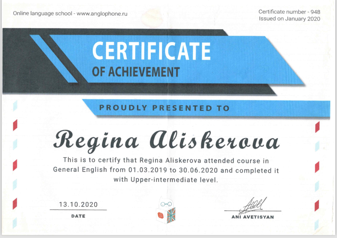 Очень рекомендую Регину Гаджимовну как репетитора по английскому! У ребёнка был полный ноль и нежелание заниматься. Регина Гаджимовна смогла найти ключик: занятия лёгкие, весёлые, но очень системные. Появились и оценки в школе, и, главное, уверенность. Она не просто учит языку, а влюбляет в него!