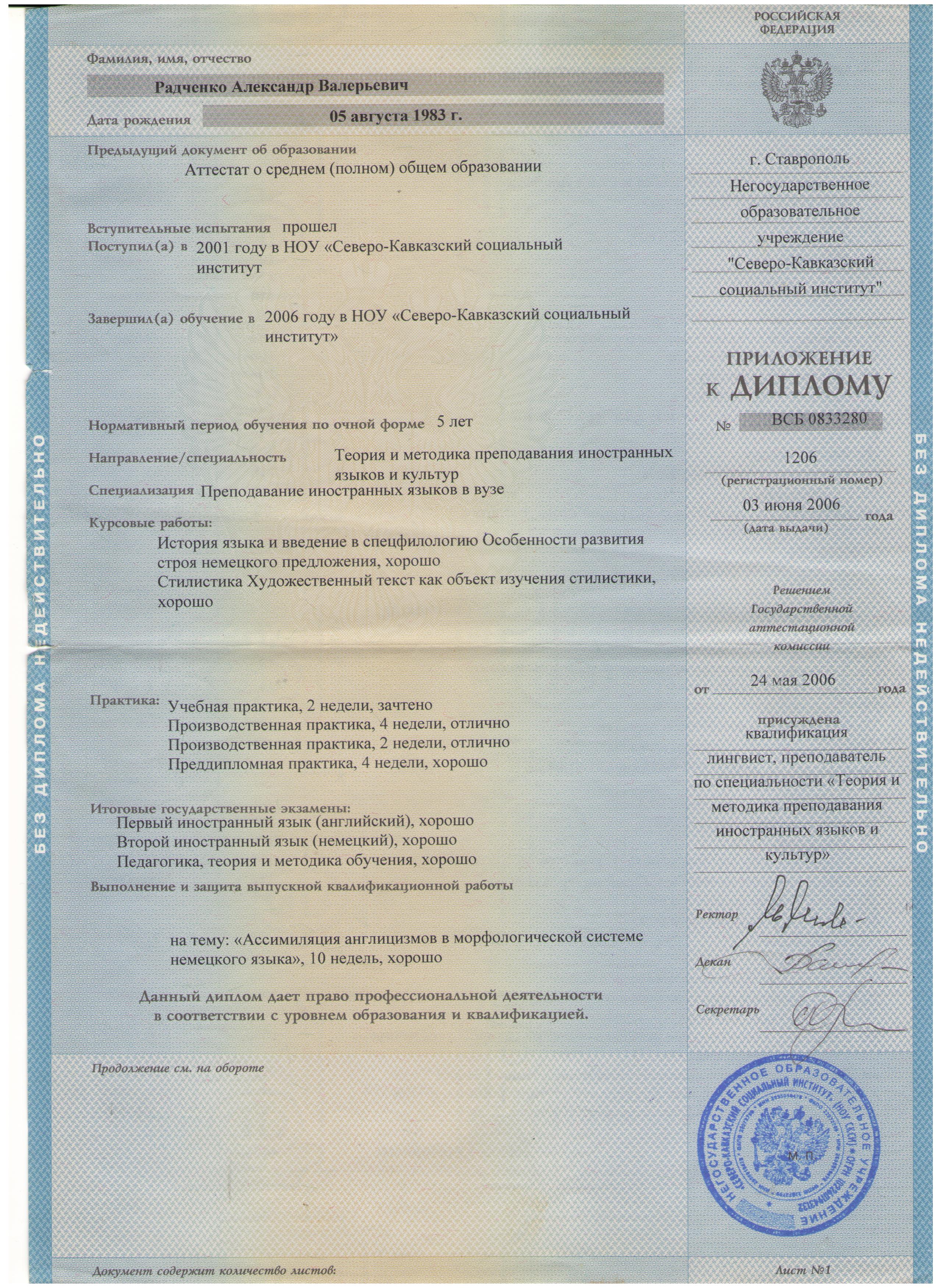 В 2001 году я закончил обучение в средней школе №6 города Ставрополя, в том же году поступил в НОУ "Северо-Кавказский социальный институт" по специальности "Теория и методика преподавания иностранных языков и культур" в 2012 году решил получить второе высшее образование и в 2016 году получил степень бакалавра в ФГБОУ ВПО "Ставропольский государственный аграрный университет" по специальности "Прикладная информатика" в 2008 году прошел повышение квалификации в Ставропольском краевом институте повышения квалификации работников образования по теме "Педагогическое проектирование и ИКТ" Я занимаюсь частным репетиторством с 2016 года С удовольствием занимаюсь с учениками от 7 до 14 лет. Работаю только онлайн!