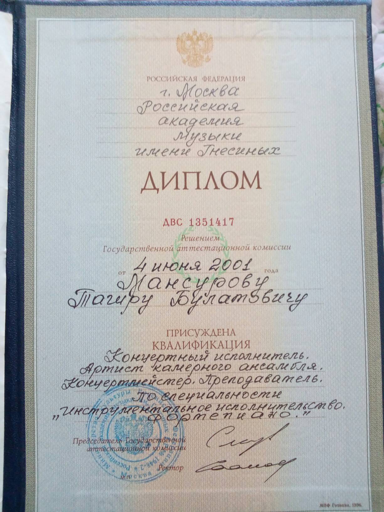 Преподаватель. Концертный исполнитель. Артист камерного ансабля. Концертмейстер. По специальности "Инструментальное исполнительство фортепиано"