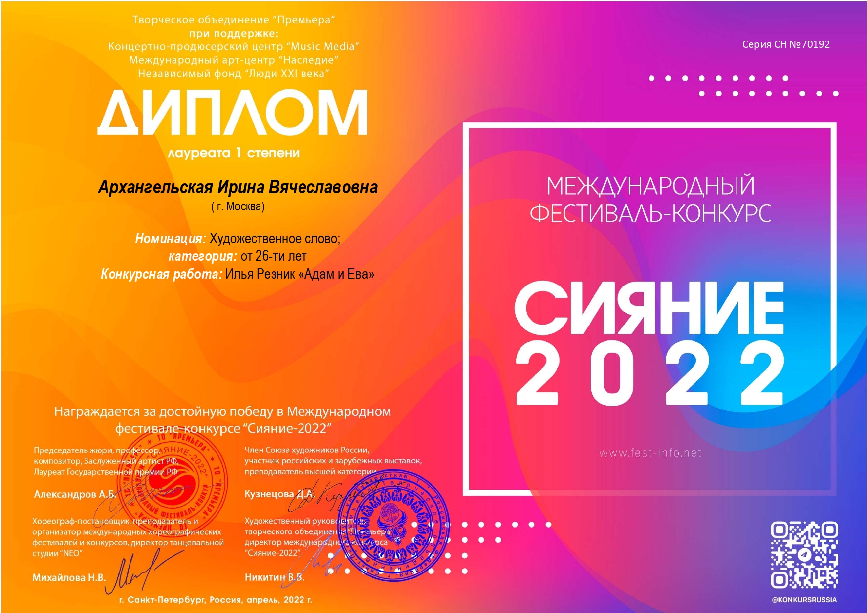 Добрый день! Даю индивидуальные уроки чтецкого искусства для детей и взрослых. Подготовим стихотворение/прозу для Вашего яркого выступления в школе, на празднике или в качестве подарка для близких. А также с удовольствием помогу с освоением актерского мастерства! О репетиторе: • Профессиональная актриса, мастер художественного слова (чтец). • Работала чтецом в Московской филармонии, была руководителем детской театральной студии, имеет психологическое образование (европейский сертификат). Играла в детских спектаклях. • В настоящее время как мастер художественного слова читает со сцены.