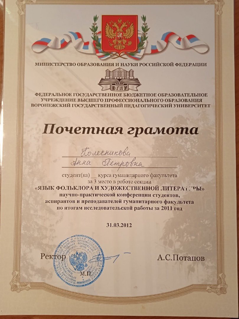 Наличие опубликованных научных работ по русскому языкознанию, истории, праву, политологии, обществознанию, философии, педагогике, литературоведению и зарубежной литературе. Опыт работы по исправлению почерка по системам Н. Соколенко и О. Лысенко. Создание авторского курса по ораторскому искусству и культуре речи. Пятилетний опыт работы с иностранцами по системе «Русский как иностранный». В 2018 году награждена Российским союзом писателей Звездой «Наследие» за вклад в русскую культуру. Являюсь номинантом национальной литературной премии «Поэт года», трижды номинант премии им. С. Есенина «Русь моя», участник Антологии русской поэзии. В 2019 году Российским союзом писателей представлена к награждению медалями имени В. Маяковского и А. Пушкина. Номинант национальной литературной премии «Поэт года» в категориях «Поэт года», «Лирика» и «Дебют года», трижды номинант (2018, 2019, 2020) премии «Русь моя» имени С. А. Есенина, номинант премии им. А. Ахматовой от Международного союза славянских писателей (Болгария).