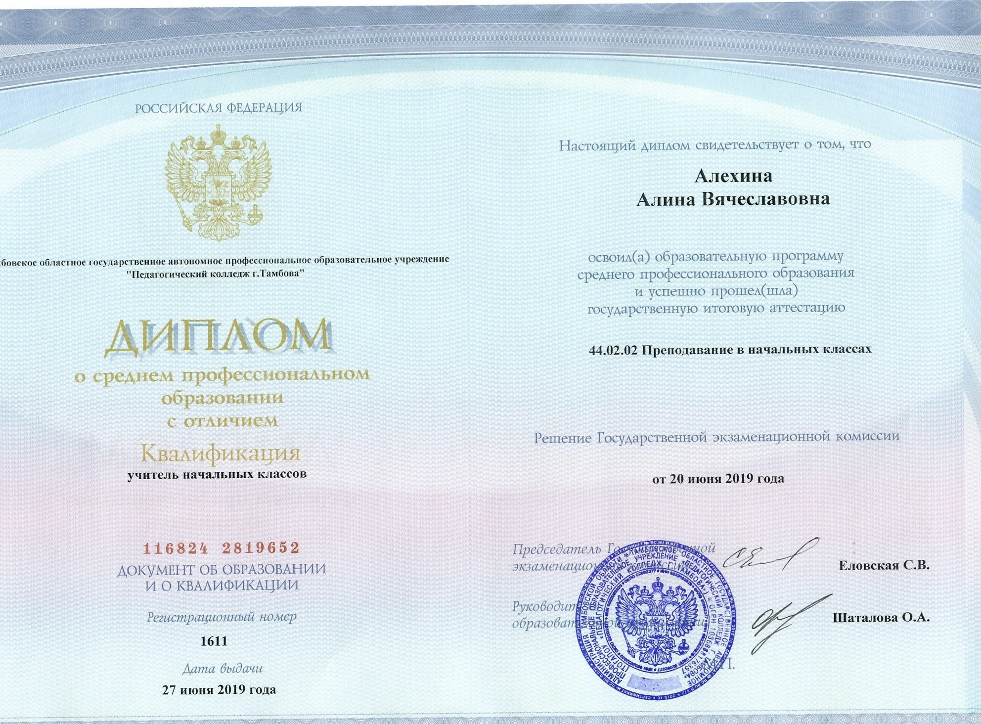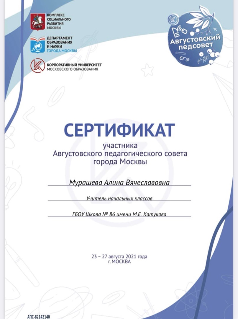 В 2019 году окончила учебное заведение, получив профессию учителя начальных классов. Так же получаю дополнительное высшее образование по специальности «педагог-психолог». В 2019-2020 учебном году работала в частной школе «Академия знаний» учителем начальных классов. С 2020 года по настоящее время работаю в государственном бюджетном общеобразовательном учреждении г.Москвы учителем начальных классов. На основе анализа мониторинга обучающегося составляю индивидуальный план работы, направленный на повышение успеваемости. В своей работе использую дополнительные методические пособия, чтобы разнообразить занятия и сделать их более интересными.