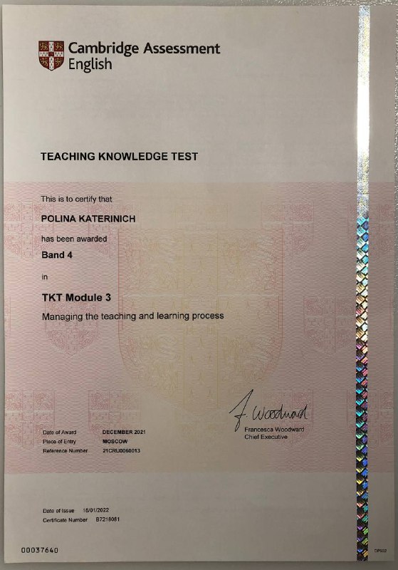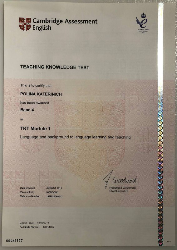 🎓 обучение с нуля, подготовка к школе 🎓 устранение пробелов и повышение успеваемости в школе 🎓 углублённое изучение Разрабатываю индивидуальный план работы, ориентируясь на нужды и интересы ученика. На моих уроках: 📚 обучаемся по учебникам британских издательств Cambridge, Oxford, Pearson и др. с добавлением интерактивных заданий и обучающих игр 📚 используем красочные игровые материалы, игрушки, карточки 📚 тёплая радушная атмосфера, в которой ребёнок раскрывается и не боится проявлять себя 📚 ребёнок приобретёт знания и освоит навыки, которые сможет применять в реальных жизненных ситуациях Сертифицированный Кембриджем преподаватель английского языка. Имеются сертификаты, подтверждающие сдачу на высший балл Кембриджских экзаменов, тестирующих педагогические знания преподавателей. Большой опыт работы с детьми.