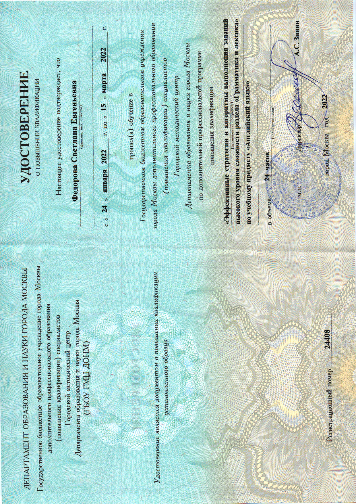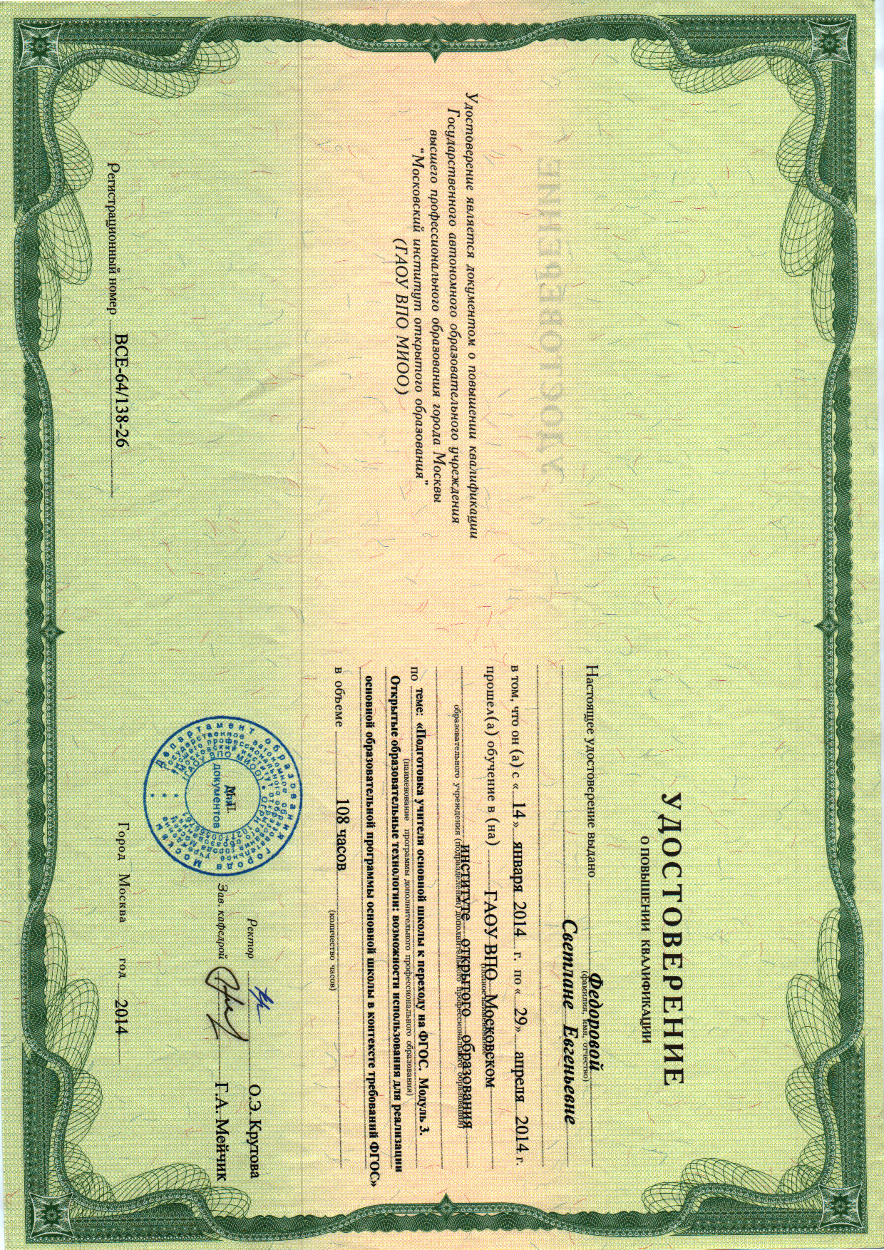 Работаю учителем английского языка 26 лет. Обучала детей 2−11 классов. Готовила школьников к Олимпиадам и ОГЭ. Прошла обучение на курсах повышения квалификации в Московском институте открытого образования и в Городском методическом центре. Департамента образования и науки города Москвы. Для меня самое главное - это научить детей понимать и любить английский язык. В своей работе использую методики разных авторов. Считаю, что самое главное в работе учителя - это быть профессионалом своего дела.