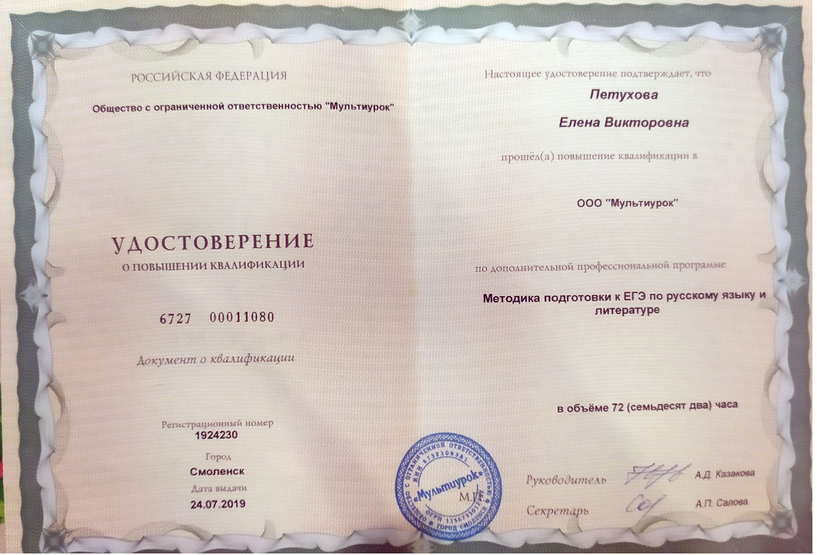 Филолог, преподаватель русского языка и литературы