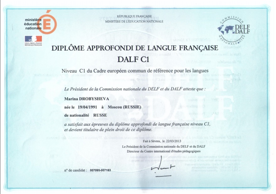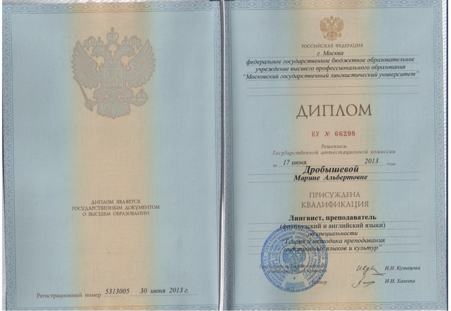 Преподаватель французского и английского языков, специальность – теория и методика преподавания иностранных языков и культур (французский и английский языки)