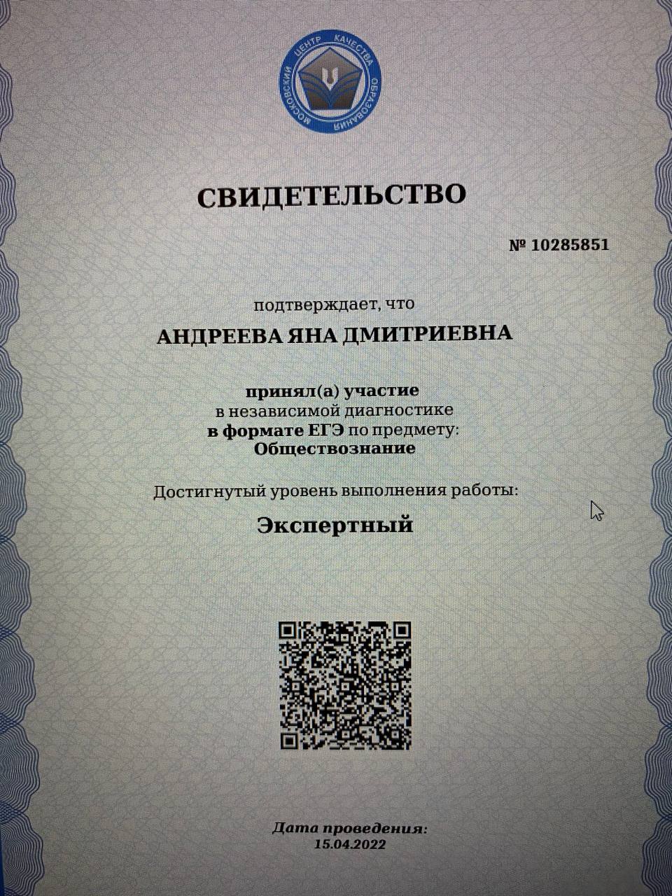 Опыт работы репетитором с 2017 г. Коммуникативная и ответственная. Нахожу к каждому ученику индивидуальный подход. Отхожу от метода «зубрежки». Главное осознанность и понимание. Обществознание — один из сложных предметов в школьной программе, но я помогу Вам найти с ним общий язык :) В процессе обучения привожу примеры из личной юридической практики — будет интересно! Результаты моих учеников: 80+ Имею экспертный уровень владения предметом. Образование: МГУ им. Ломоносова, юридический факультет. С 2019 года работаю преподавателем обществознания в Lancman School Уровень владения предметом - экспертным (сертификат МЦКО) На данный момент работаю учителем истории и обществознания в общеобразовательной школе в г. Москве