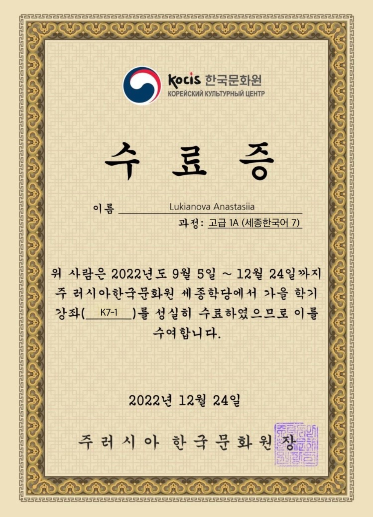 — Проходила обучение в корейском вузе — Преподаю корейский 3 года — Обучаю говорению — Две ученицы поступили в корейские вузы после 2 лет обучения со мной. — Ставлю правильное произношение. — Прошла курсы синхронного перевода с английского на корейский в корейском вузе — Есть опыт синхронного перевода с корейского языка в ВШЭ. Тесно связана с изучением языков уже 7 лет, 3 из которых преподаю. Ещё со школы интересовалась лингвистикой. Помимо изучения английского, начала изучать испанский, а в последствии — корейский. Прошла курсы в институте корня Седжона в Корейском культурном центре (ККЦ), успешно завершив 7 уровней из 8. (После поступления в ВУЗ дополнительно занималась в институте короля Седжона при Высшей школе экономики (ВШЭ), окончив 7-ой уровень из 8). Сейчас учусь в Московском государственном лингвистическом университете (МГЛУ) им. Мориса Тореза на факультете английского языка (ФАЯ), с корейским и английским языками. За успехи обучению была выбрана для программы по обмену в корейский вуз. Семестр обучаюсь в университете CNU (Chungbuk National University), который является одним из десяти ведущих корейских национальных университетов. На данный момент преподаю английский и корейский языки. Для достижения эффективного результата использую индивидуальную методику преподавания: определяю уровень без сложных тестов, подбираю подходящий материал в зависимости от того, какой метод усвоения информации больше подходит ученику. Отслеживаю рост навыков и отрабатываю информацию, которая усваивается сложнее так, чтобы не было пробелов в изучении языка. Что можно изучить со мной: Базовый английский/корейский для себя, путешествий; Вступительные экзамены на курсы корейского языка в корейском культурном центре (институт короля Седжона); Разговорный корейский с 1 по 4 уровень / английский с A1 — B2