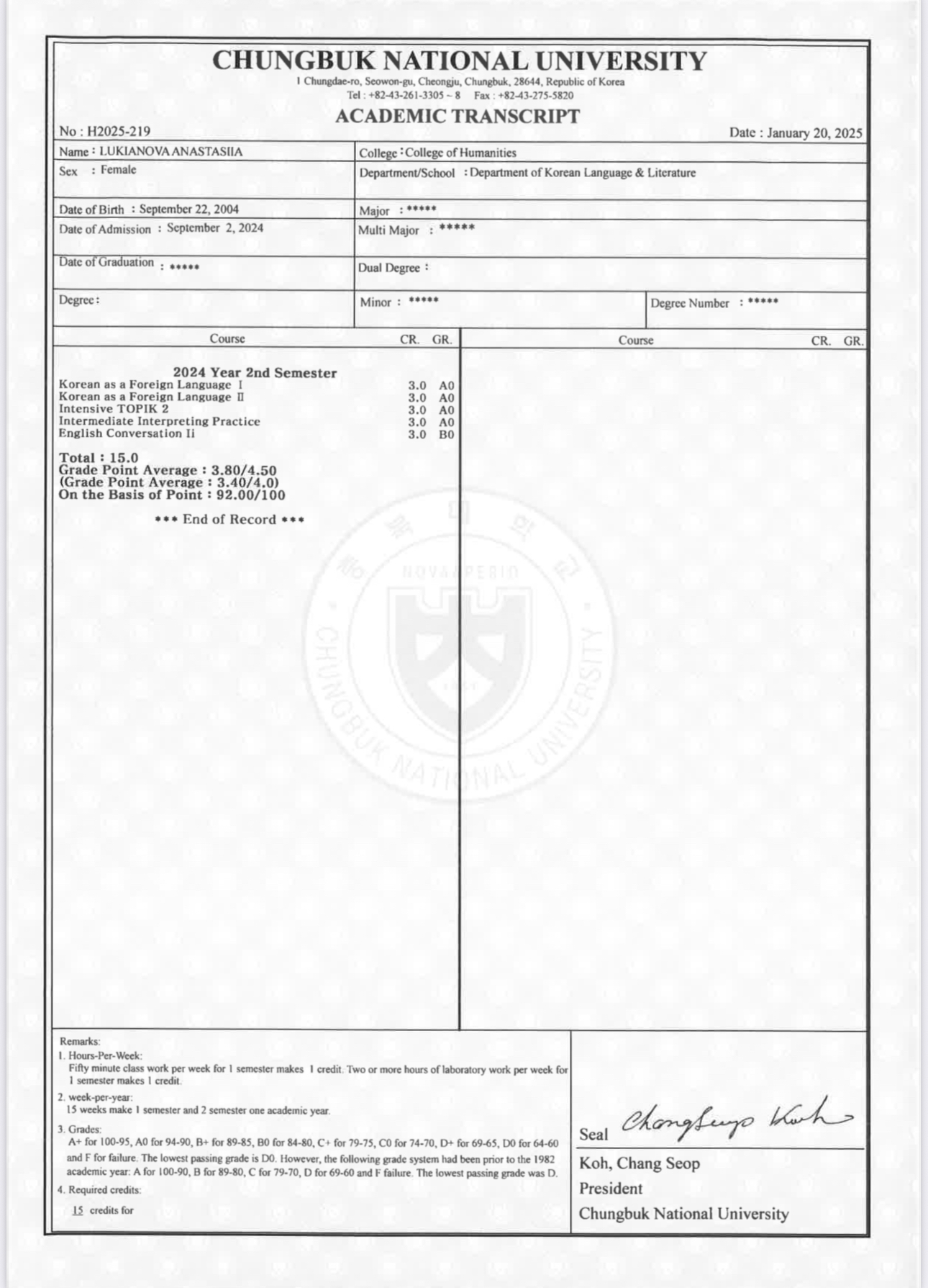 Опыт преподавания языка: 4 года Стажировка в топовом вузе Кореи 충북대 6 месяцев. 8 уровень сертификатов ККЦ и НИУ ВШЭ школы 세종 Курсы синхронного перевода в корейском вузе Перевод онлайн конференций корейских профессоров вузов 고려대, 연세대.