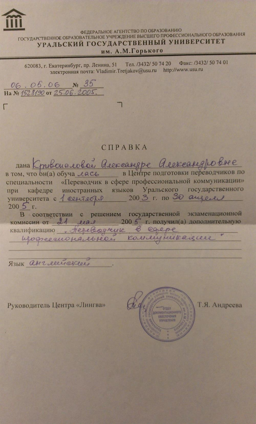 Уральсий государственный университет им. А.М. Горького