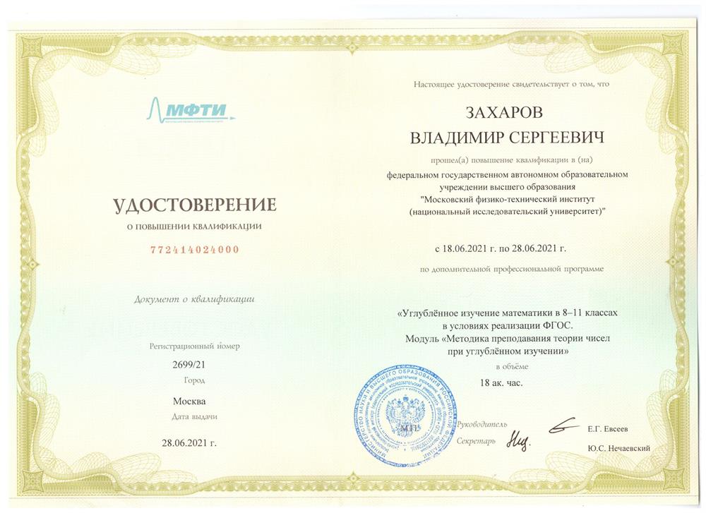 Рад приветствовать Вас на странице моей анкеты!Начиная с 2006 года я преподаю математику и готовлю школьников к ЕГЭ. Каждый год мои ученики набирают самые высокие баллы на ЕГЭ и поступают в ведущие ВУЗы России.Я считаю важным в работе преподавателя постоянно самому учиться. Поэтому я каждый год прохожу повышение квалификации, участвую в семинарах и конференциях, а так же сдаю сам ЕГЭ наравне с моими учениками. Мои результат 2020 и 2021 года -100 баллов. ( Результат Вы можете увидеть в галерее дипломов). Мой опыт поможет любому ученику выйти на максимум его возможностей и успешно сдать ЕГЭ.Занятия проходят в мини-группах по 4 человека. Ученики 10-ч классов занимаются с 15-17, а ученики 11 классов с 17-19. Стоимость 120 минут 2000 руб. При оплате 8 занятий предусмотрена скидка.