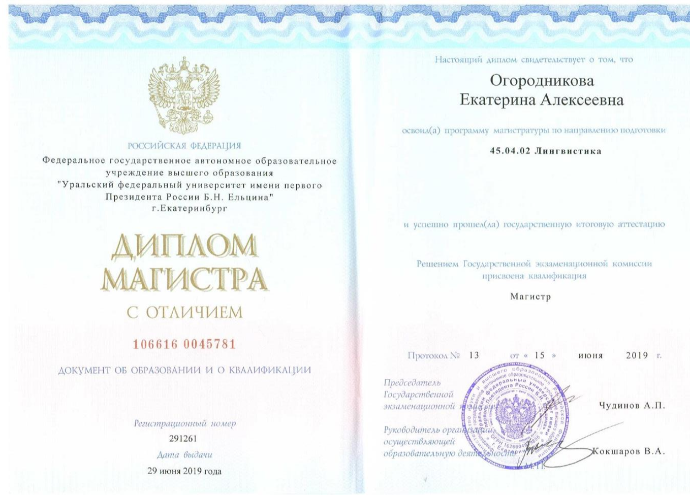 2017 - окончание бакалавриата с красным дипломом. 2019 - окончание магистратуры с красным дипломом.