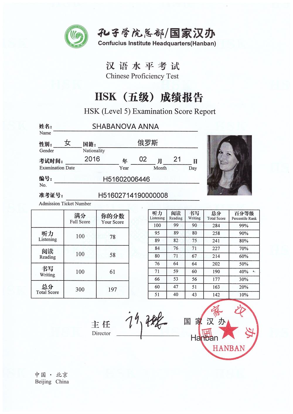 Сертификат HSK