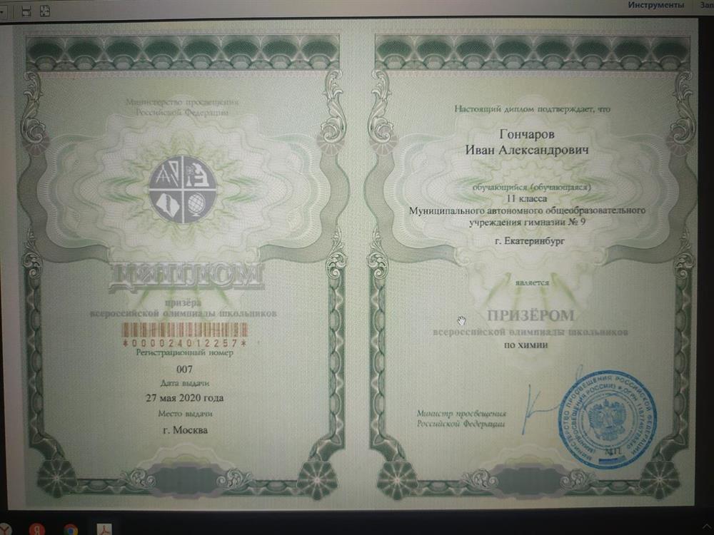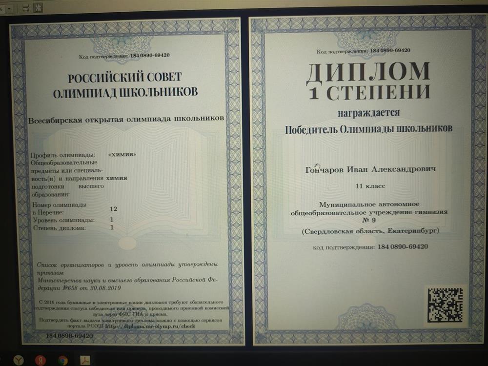 Студент 1-ого курса химического факультета МГУ, призёр всероссийской олимпиады школьников.
