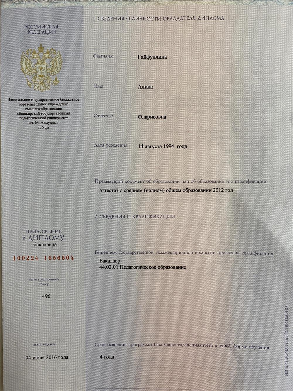 Репетитор Алина Фларисовна