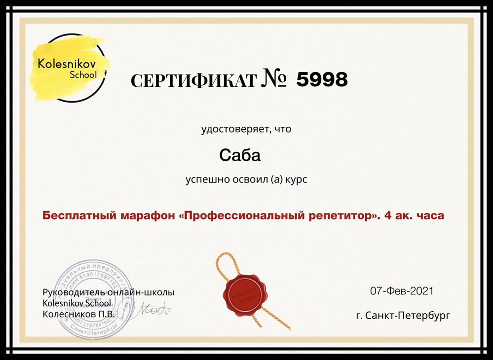 Сын учится в СурГУ на первом курсе, появились проблемы с аналитической геометрией. Он начал заниматься с Александром Олеговичем и ему он очень нравится, наконец-то начал понимать предмет. Педагог его тоже хвалит, говорит, что он толковый парень. Мы очень довольны нашим репетитором, спасибо!
