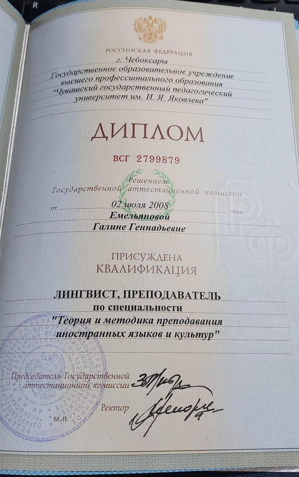 Меня зовут Галина , Предлагаю услуги репетитора по английскому языку для школьников 1-11классов, студентов и взрослых. Провожу Индивидуальные занятия и Дистанционные уроки по Skype. — Выявление и устранение пробелов в знаниях;— Закрепление и повторение материала; — Помощь в подготовке домашнего задания;— Подготовка к ОГЭ, ЕГЭ, ВПР; Развиваем коммуникативные навыки; разговорный английскийОкончила ЧГПУ им. И.Я.Яковлева,факультет иностранных языков , опыт работы репетитором 12 лет, отличные результаты ЕГЭ (97баллов, 83 балла )