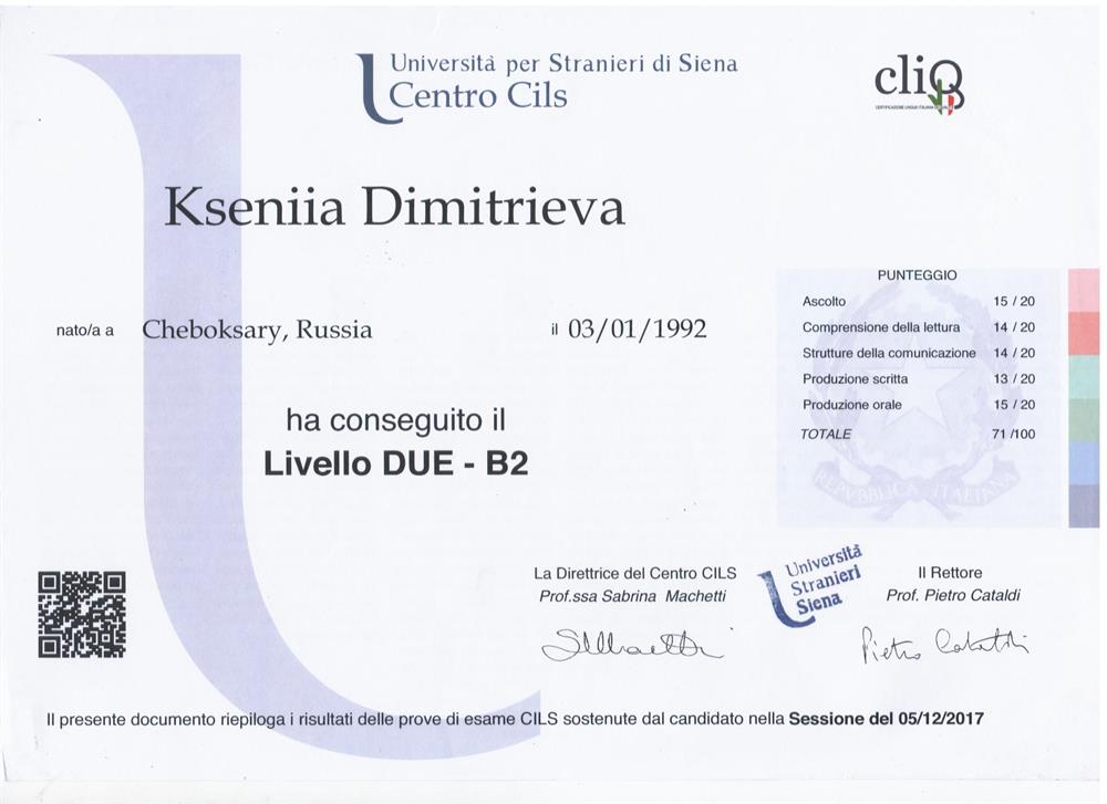 Репетитор по итальянскому языку из Италии (con amore)Ciao, cari futuri allievi! Привет мои дорогие будущие ученики! Mi chiamo Kseniia ! Я Ксения!Коротко расскажу о себе:1. Итальянский язык я начала учить еще как минимум 8 лет назад в университете в Санкт-Петербурге. Уже тогда я стала часто выбираться в Италию: в короткие туристические поездки по известным маршрутам, в волонтерские лагеря на пару месяцев, затем уехала на полугодовую стажировку в Туринский университет, где сдавала экзамены по итальянкой литературе, уже на тот момент владея языком как минимум на уровне B2. 2. После учебы в СПБГУ, я переехала в Италию, чтобы быть еще ближе к тому, что я люблю. Здесь я легко сдала вступительный экзамен на С1 (продвинутый уровень) и поступила на филологический университет в университете г. Генуя. Сейчас я спокойно сдаю экзамены, пишу диплом, и в то же время путешествую, общаюсь и узнаю Италию с самых разных сторон. 3. Таким образом мой уровень языка близок к носителю, ведь я каждый день на нем говорю! Более того, я в состоянии читать сложные литературные и научные тексты, ведь я этому учусь в университете. 4. Я очень открытый человек, мне нравится делиться не только знанием языка, но и частью своей жизни. Буду рада помочь вам в решении любых "итальянских" вопросов. Коротко расскажу о том, как я преподаю:1. Материалы я использую самые разные: от Alma Edizioni и loescher до хороших российских учебников. Я хорошо знаю структуру преподаваемого предмета, поэтому свободно перемещаюсь от одной книги к другой. Вижу в данном многообразии пользу: когда вы приедете в Италии говорить с вами по главам в учебнике точно никто не будет :)2. Для меня важно, чтобы занятие были по-настоящему интересными. На моих уроках всегда много дополнительного и неожиданного материала: не только песни и оригинальные тексты, но и юмористические видео из ютуба уже с самых первых занятий! Игры и визуализация материала - тоже мой большой плюс!3. Интересные материалы + хорошие учебники - это ведь только половина успеха, не правда? Вам ведь важно не только понимать устную и письменную речь, но и ее воспроизводить? Поэтому я почти всегда говорю на итальянском языке и вас к этому буду подталкивать. Также я: Слежу за общей успеваемостью, подгоняю работу к срокам, подвожу итоги по усвоению языкового уровня по европейской шкале языковой компетенции. Считаю, что начальный уровень языка (от уровня А1 до В1) можно освоить достаточно быстро, поэтому с удовольствием беру начинающих. Также готовлю к экзаменами CILS, PLIDA (до уровня C1), к вступительным экзаменам в итальянские университеты. С удовольствием занимаюсь с детьми от 5 лет.Saro contenta di vedervi alle mie lezioni! Буду рада видеть вас на моих занятиях!Ciao ciao!