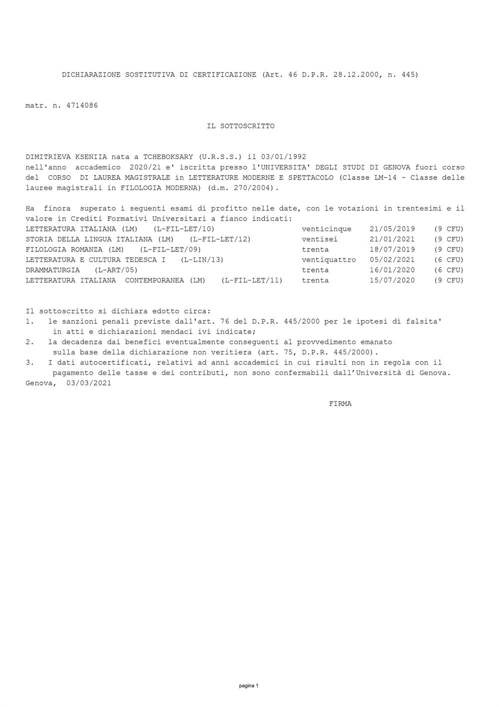 Studentessa di magistrale in lettere moderne e spettacolo.